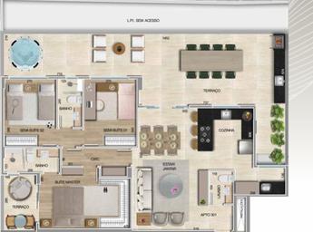 03 quartos sendo 1 suíte master com terraço e 02 semi-suítes; Cozinha integrada á sala; lavabo; área externa privada.