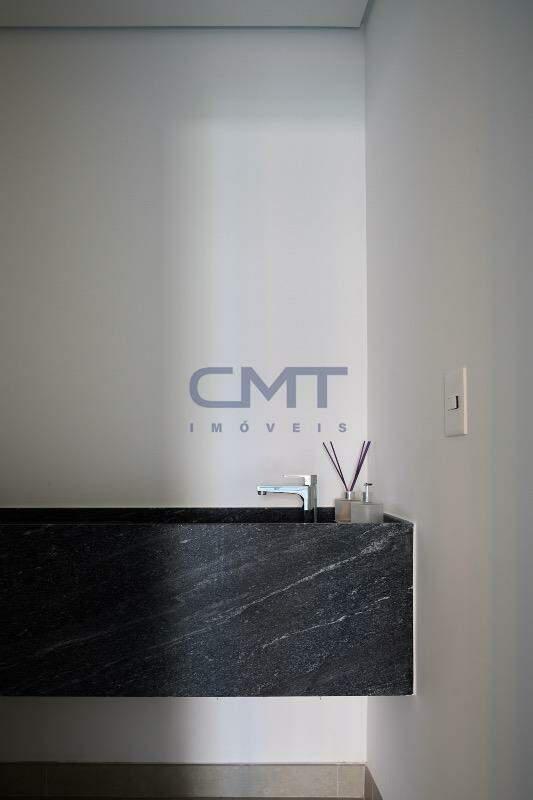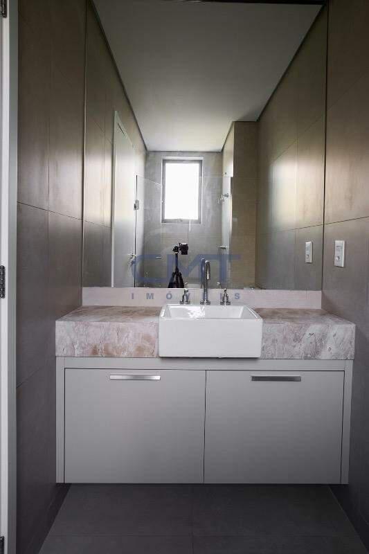 Sala bastante ampla, para diversos ambientes. Conta com piso em porcelanato, janelas amplas, e também varanda, proporcionando ótima ventilação e luminosidade natural no interior do ambiente. Acesso à varanda em vidro. Ambiente conta também com lavabo com piso em porcelanato e bancada em granito, com cuba esculpida.