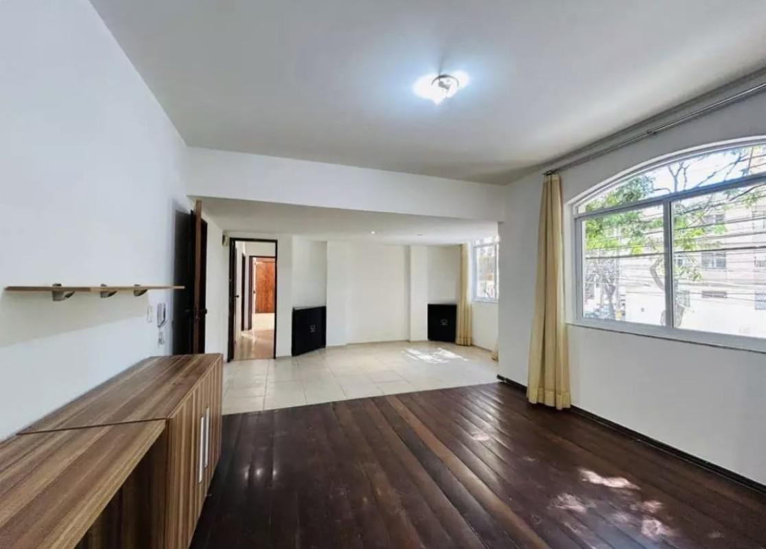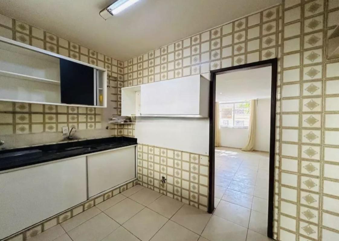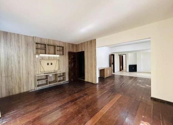 Apartamento com área de 155m², sala para 02 ambientes com piso em tábua corrida, varanda, 04 quartos transformados em 03 (01 quarto foi ampliado a sala), janelas de alúminio novas, banho social e suíte com box blindex, cozinha com armários, área de serviço e DCE.