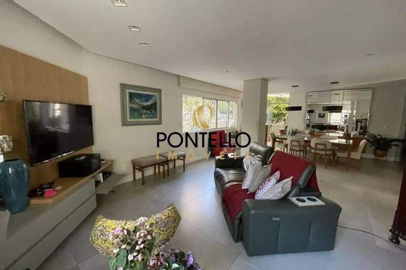 Sala ampla para 02 ambientes, com iluminação planejada, piso em porcelanato e varanda integrada, proporcionando ótima ventilação e iluminação natural.