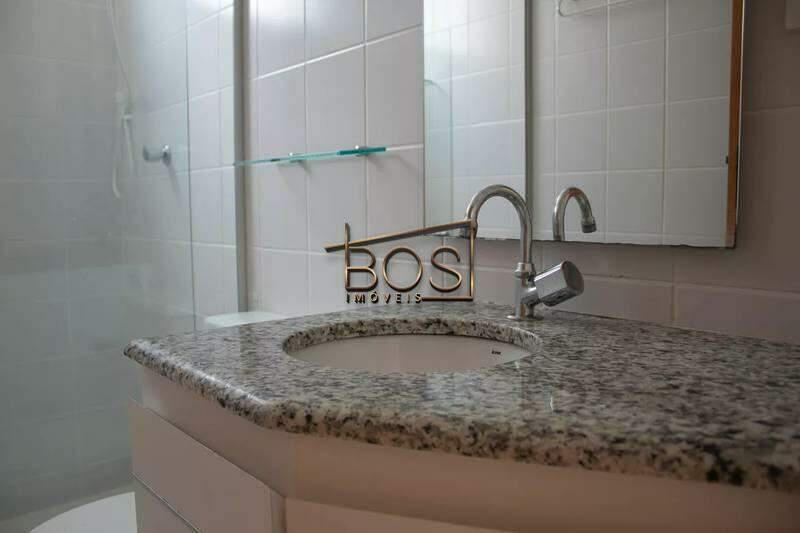 - Banheiro social com bancada em granito, espelho e box em blindex