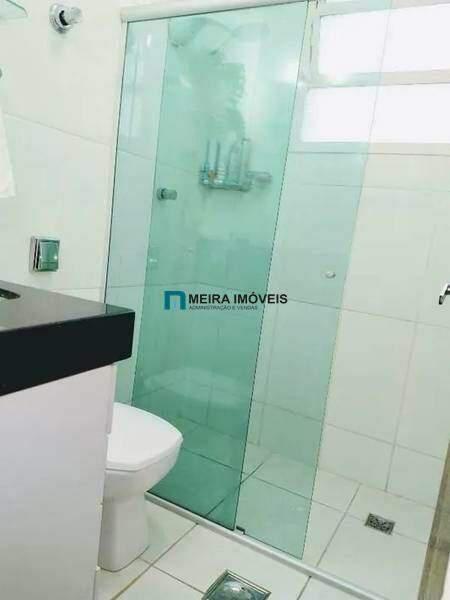 Banheiro social, praticidade no dia a dia, box blindex, armário, bancada e piso em cerâmica.