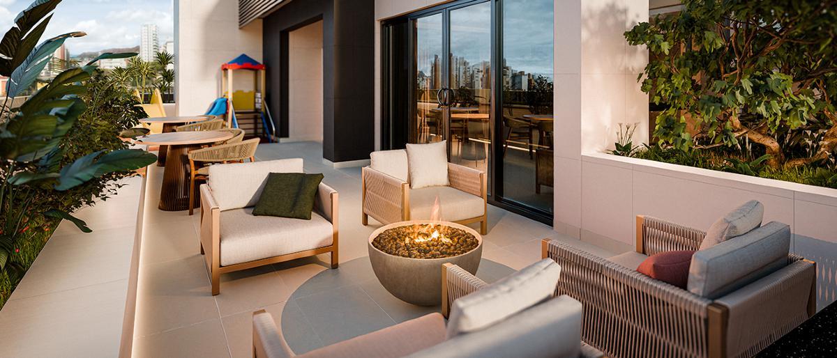 O prédio conta com: Praça do Fogo, Academia, Espaço Gourmet, Salão de Festas, Piscina, Guarita com Eclusa, Coworking, Hall de Entrada, Deck molhado, Circuito CFTV, Sauna, Churrasqueira.