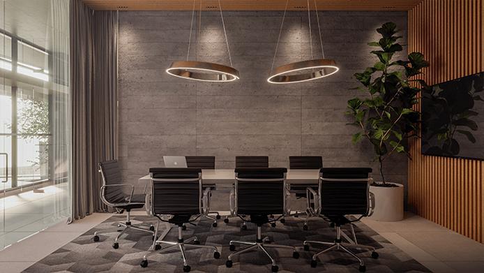 É um edifício moderno, que não só oferece conforto e funcionalidade, mas provoca uma conexão mais orgânica entre arquitetura, natureza e bem-estar.