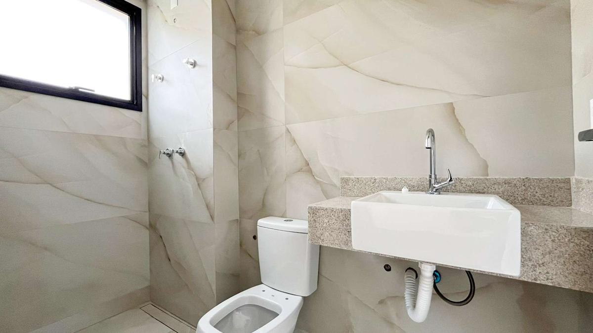 3 quartos amplos com piso em vinílico de madeira, sendo três suítes, uma suíte com closet
