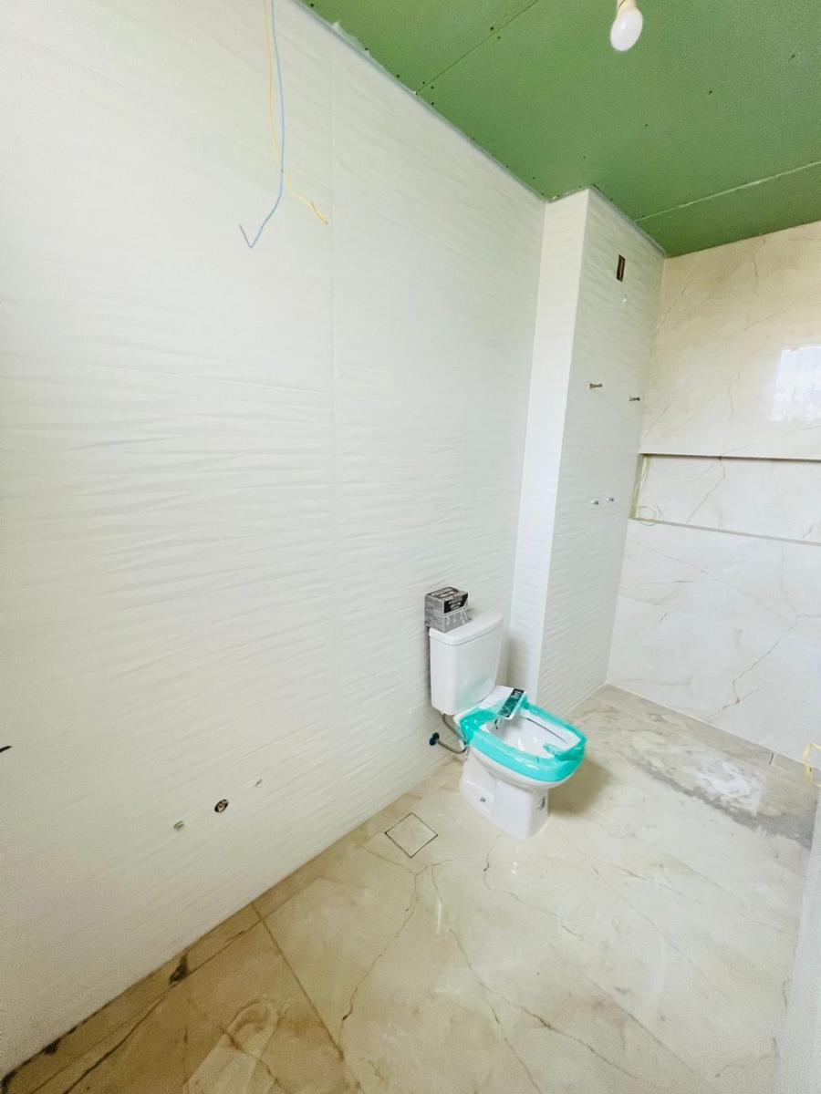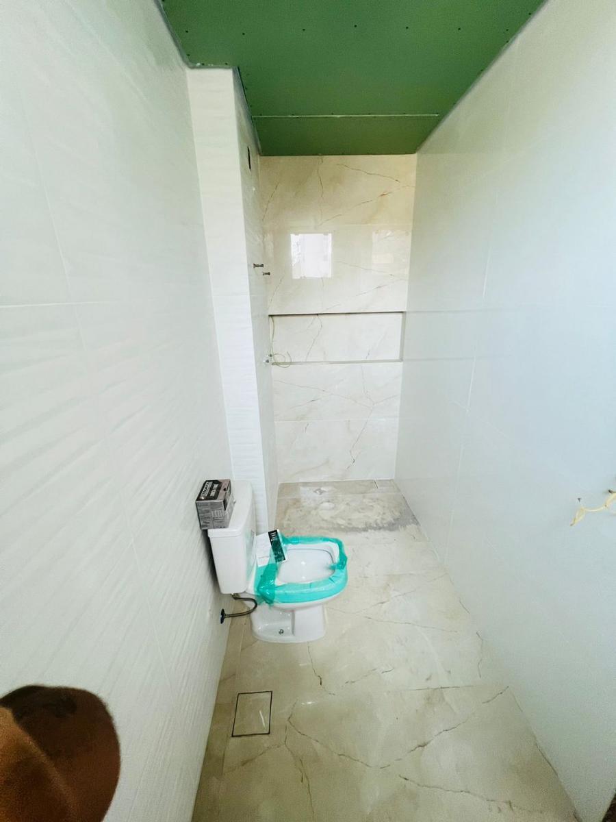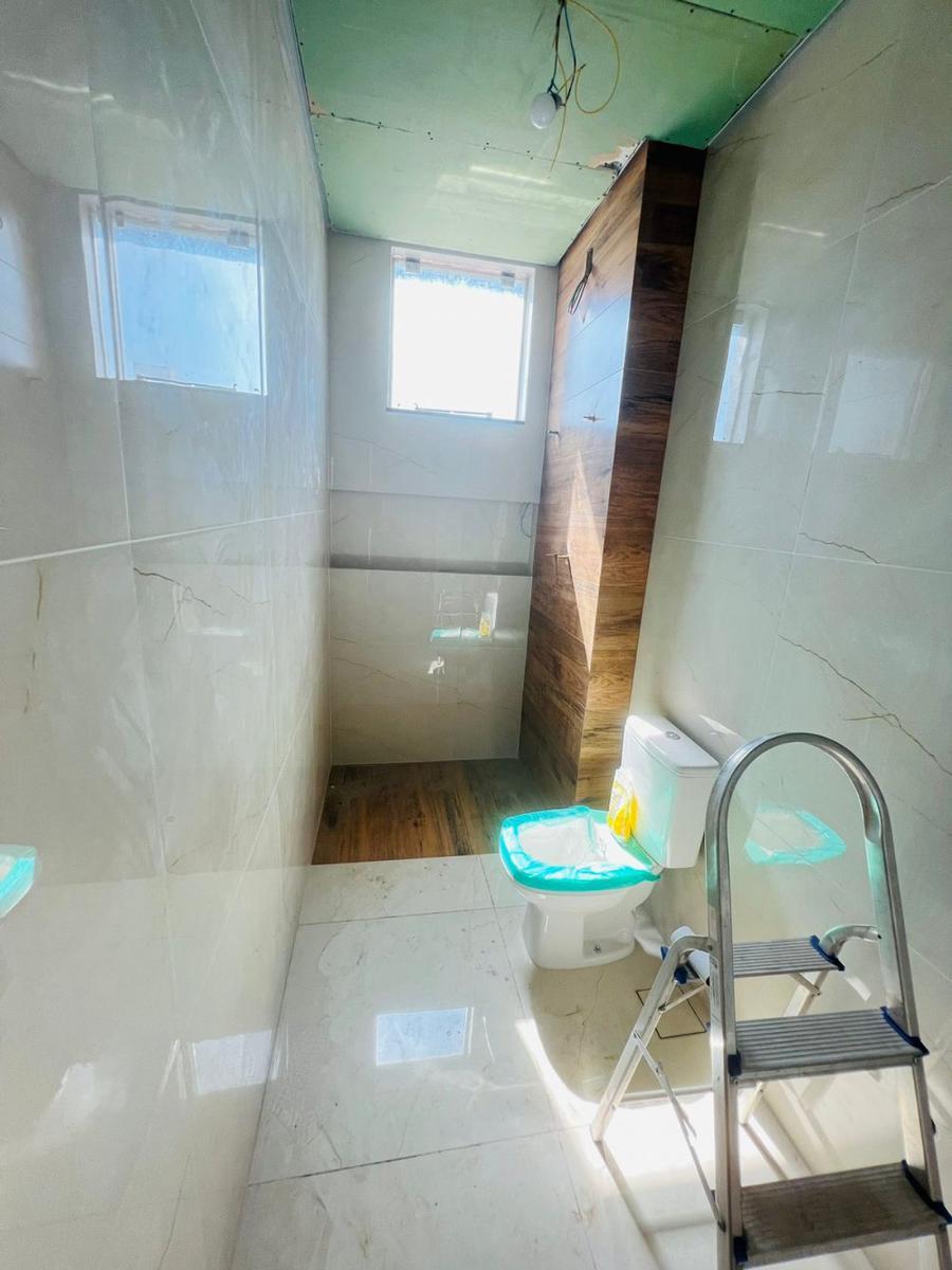 banho social amplo com paredes 100% revestidas em porcelanato