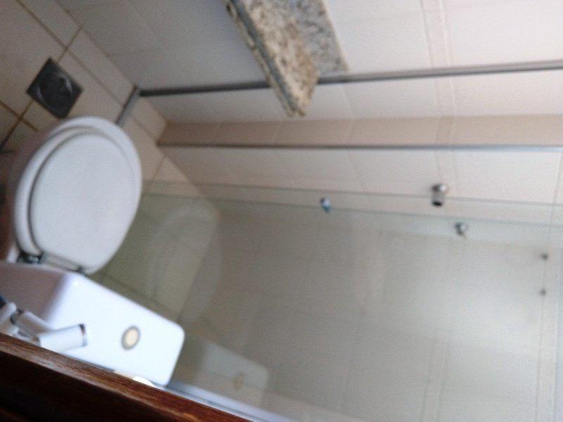 -Banheiro social em cerâmica com bancada em granito e box em vidro temperado;