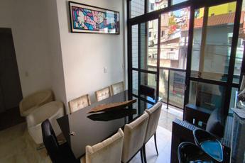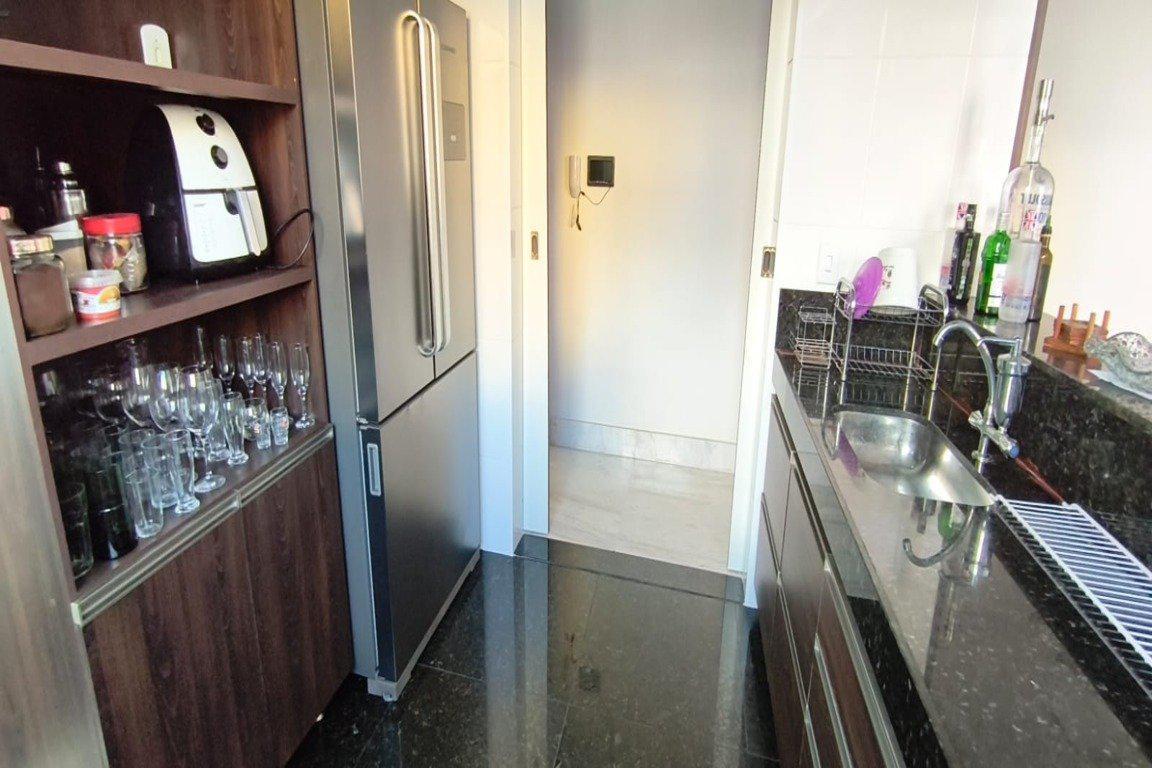 Apartamento com salão em L para 2 ambientes, piso em marmore branco, varandão, cozinha americana com balcão para a sala e bancada em granito, armarios suspensos e no fechamento da bancada, cristaleira, area de serviço separada, 03 quartos com piso laminado de madeira, o quarto suite com closet, os quartos de solteiro com armarios, banho social e suite com bancadas e pisos em marmore, e box de vidro, area privativa de aproximadamente 40 m², com piso porcelanato, coberta com policarbonato, com bancada e ducha.