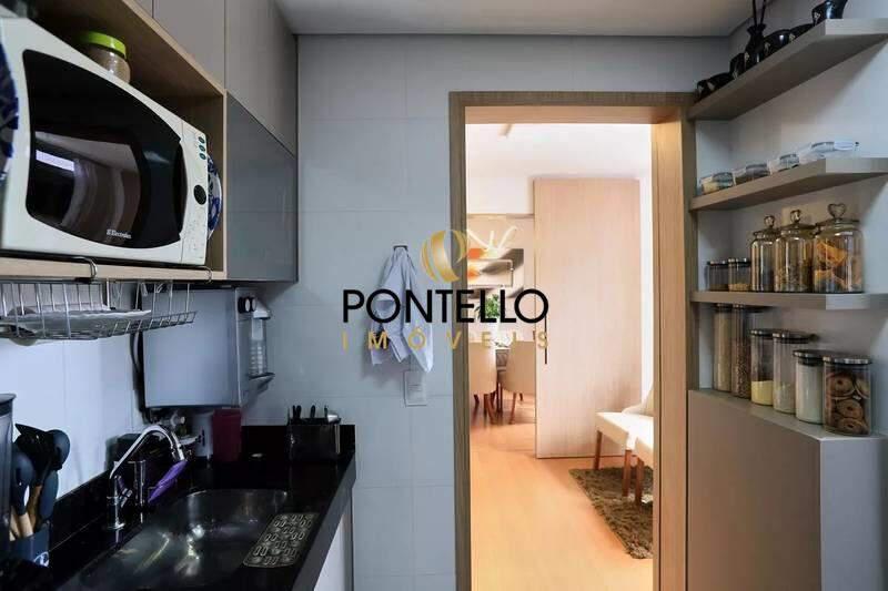 Cozinha com armários planejados e piso em cerâmica