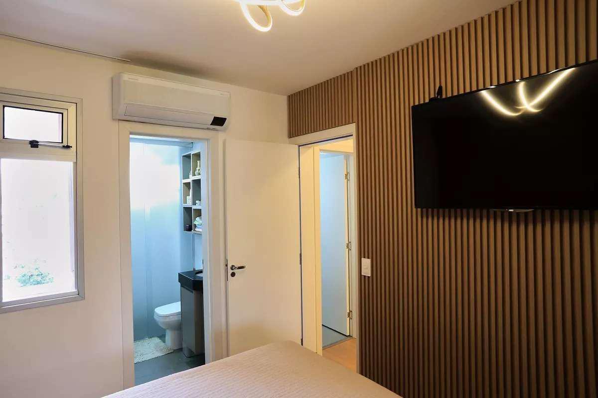 3 quartos, sendo 1 suíte, com armários planejados e piso laminado de madeira