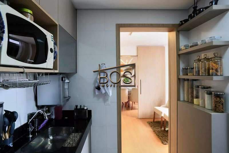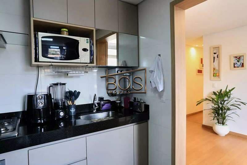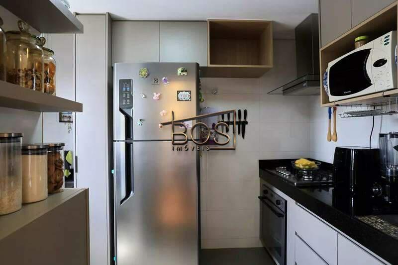- Cozinha com armários planejados e piso em cerâmica