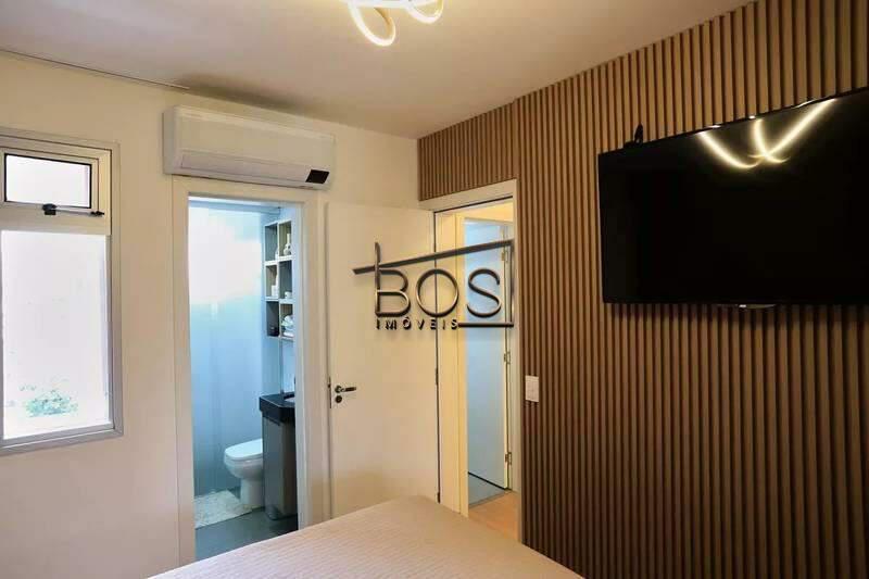 - Banho da suíte com armário planejado e box em vidro translúcido fosco