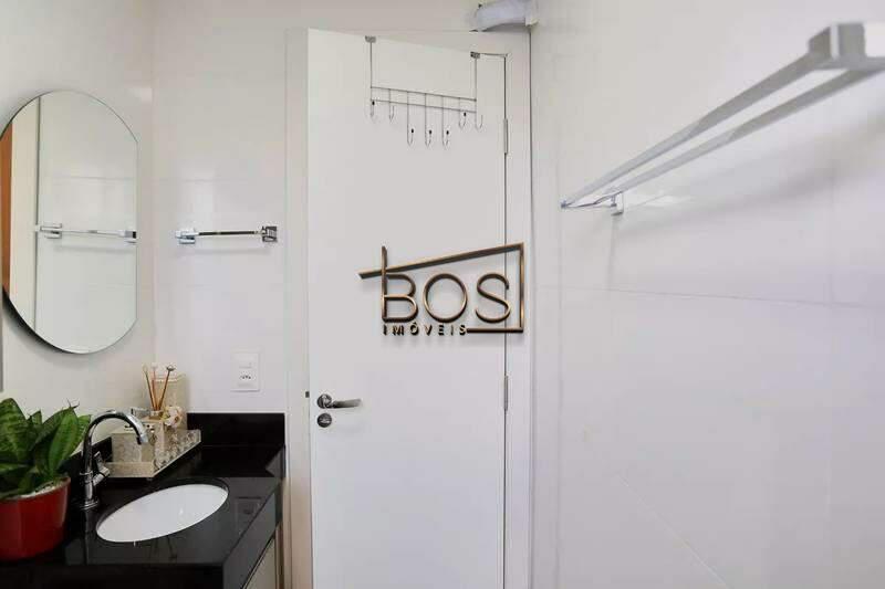 - Banho social com armário planejado e box em vidro translúcido fosco