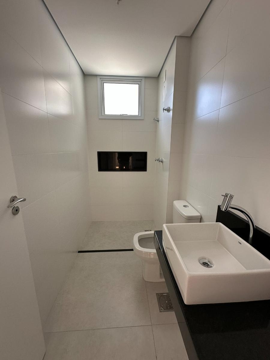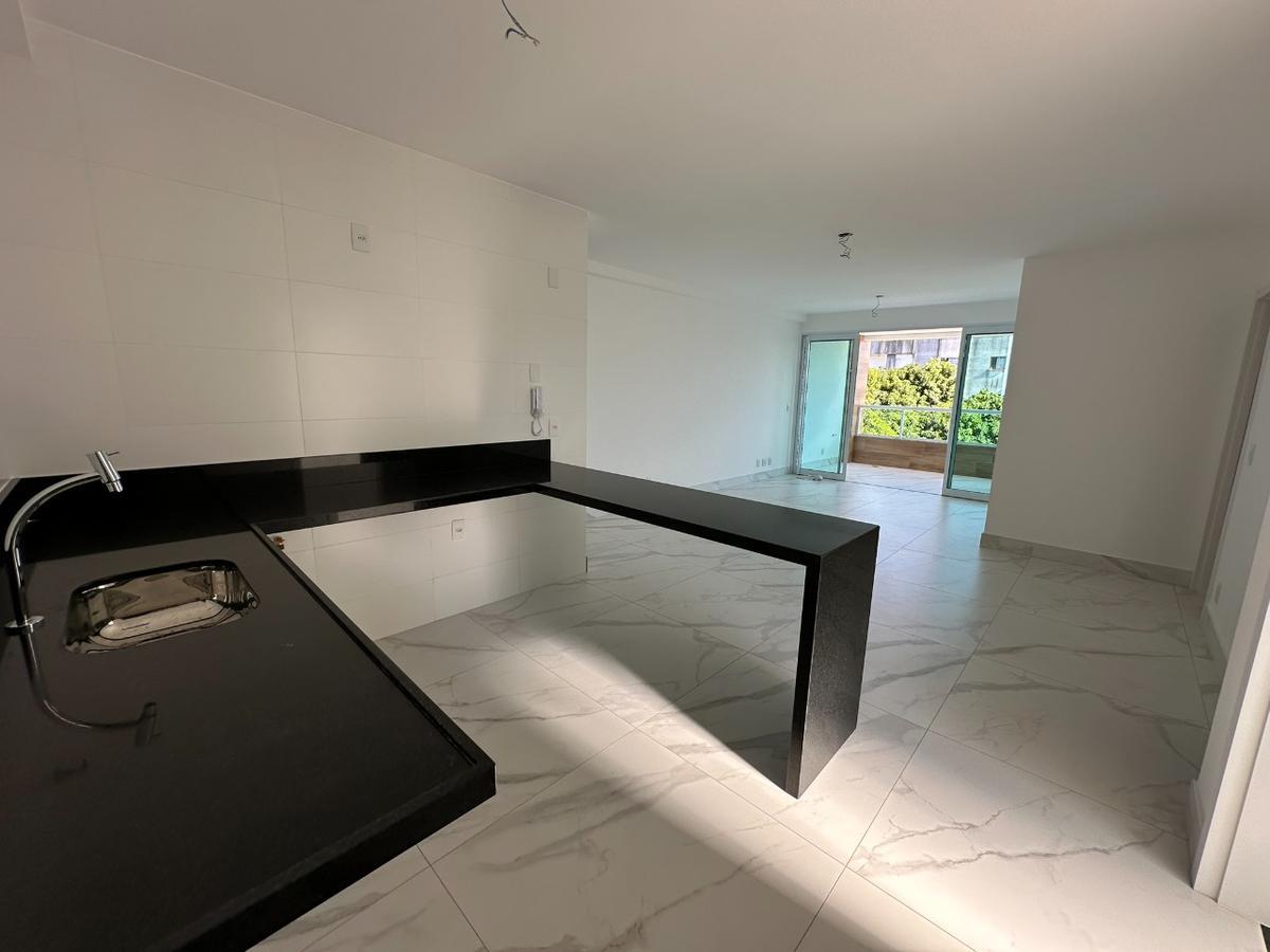 Apto Tipo: 3 quartos piso laminado madeira, dois banhos social e suíte, piso porcelanato, bancadas em granito ,salão dois ambientes piso em porcelanato, varanda ,grande, lavabo, cozinha piso porcelanato, bancada granito, área serviço.