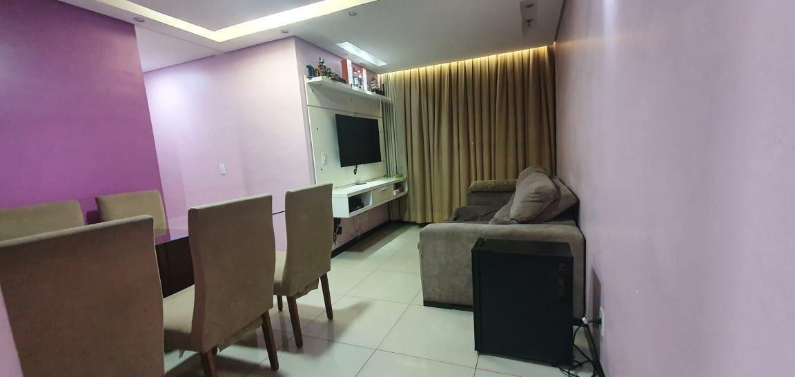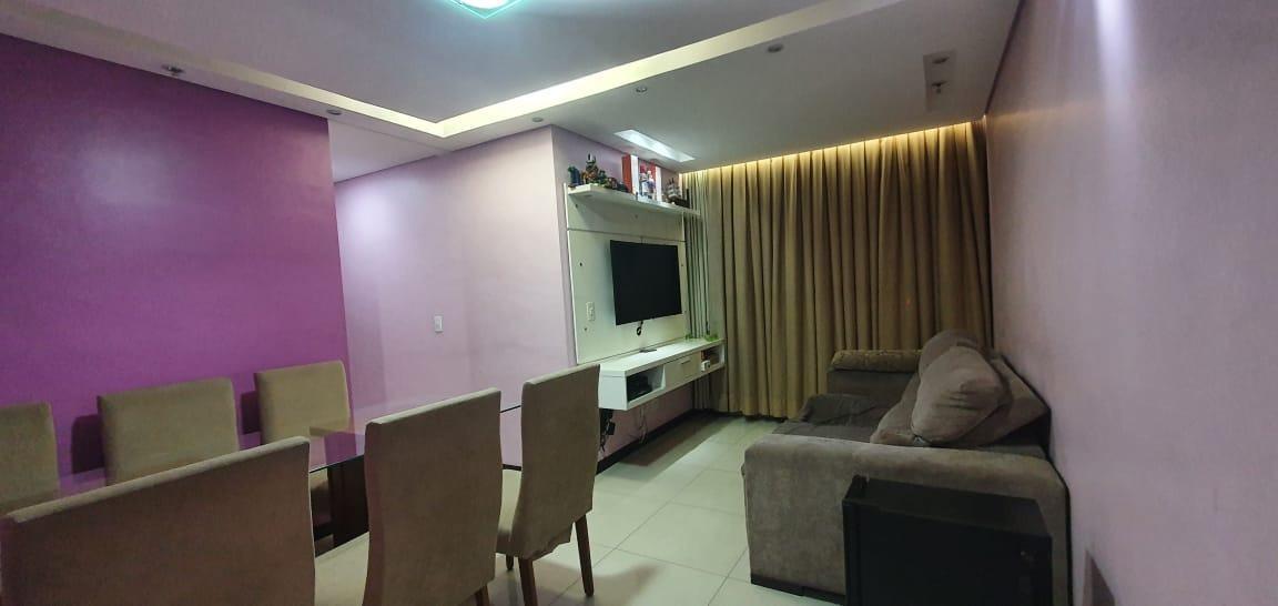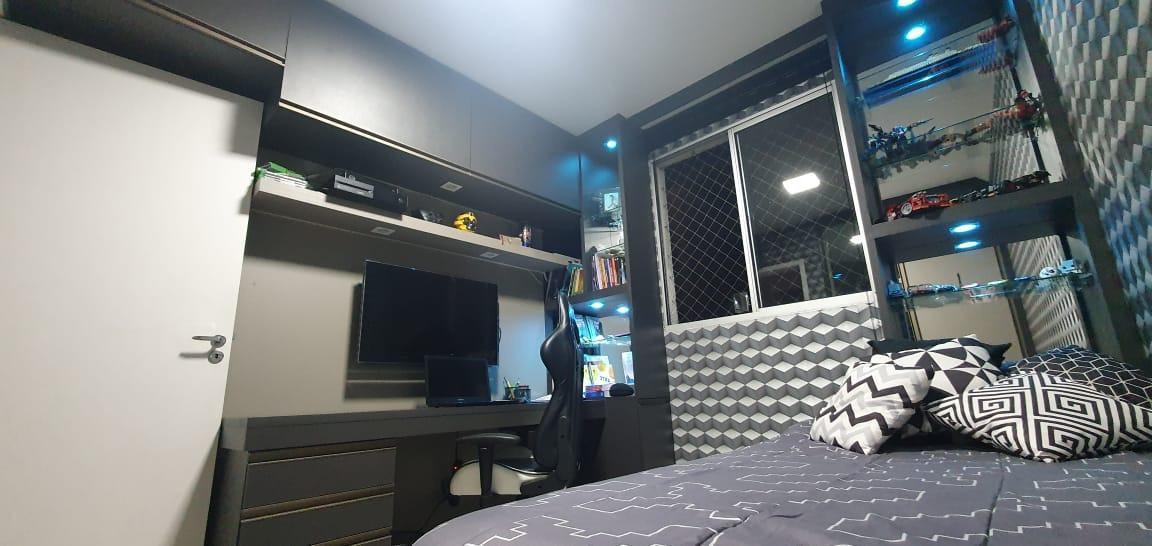 Apto de 3quartos sendo uma suíte com piso em porcelanato,,armários, embutidos, painel,sala para dois ambientes com piso em porcelanato,rebaixamento em gesso,painel,cozinha planejada com bancada em granito banheiros com armários nas pias e box brindex,,are-a de serviço,2 vagas de garagem cobertas em linha,prédio com elevador,,próximo au comercio.