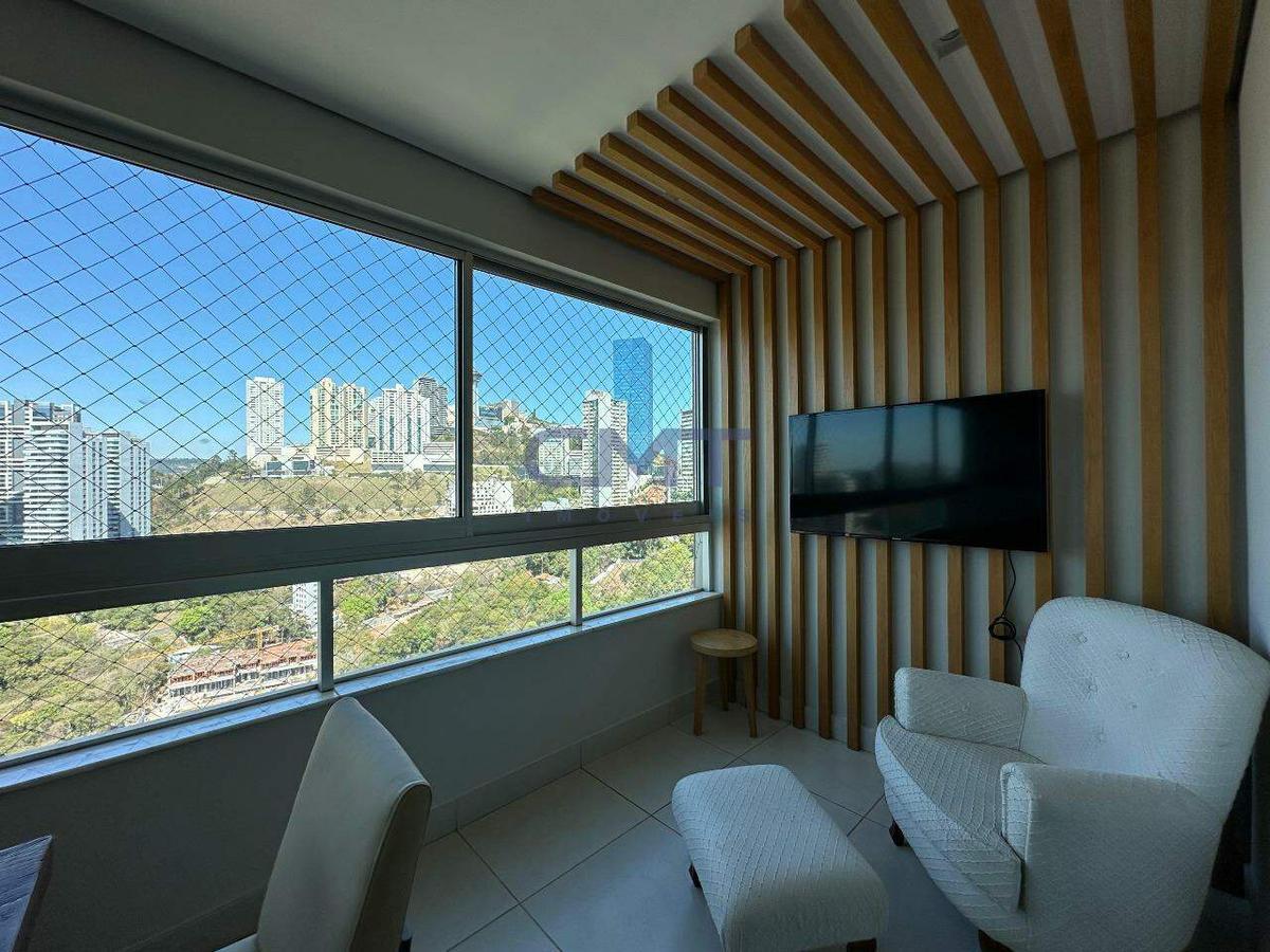 Apartamento finamente decorado, com projeto luminotécnico e de interiores assinado. Possui 3 quartos, sendo 1 suíte, vista definitiva e deslumbrante para as montanhas. Destaque para a marcenaria de alto padrão (MDF Ultra ¿ Duratex), acabamento impecável e materiais de primeira linha.