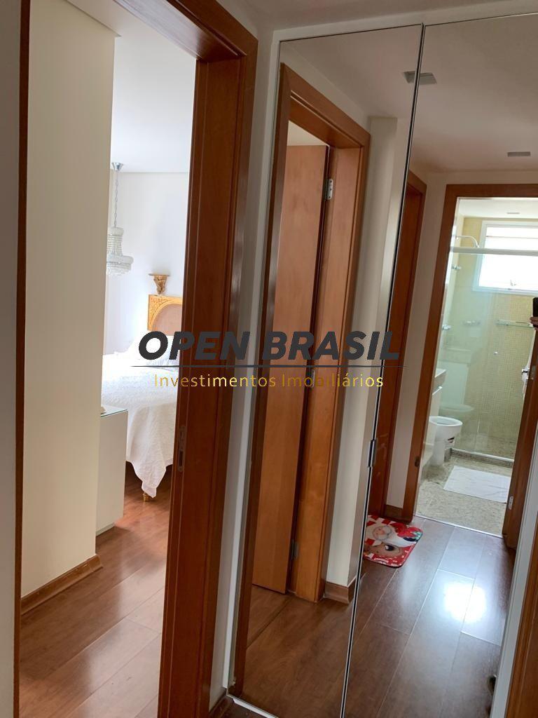 Sala para 02 ambientes (piso em porcelanato), teto rebaixado com projeto luminotécnico, painel e espelho.