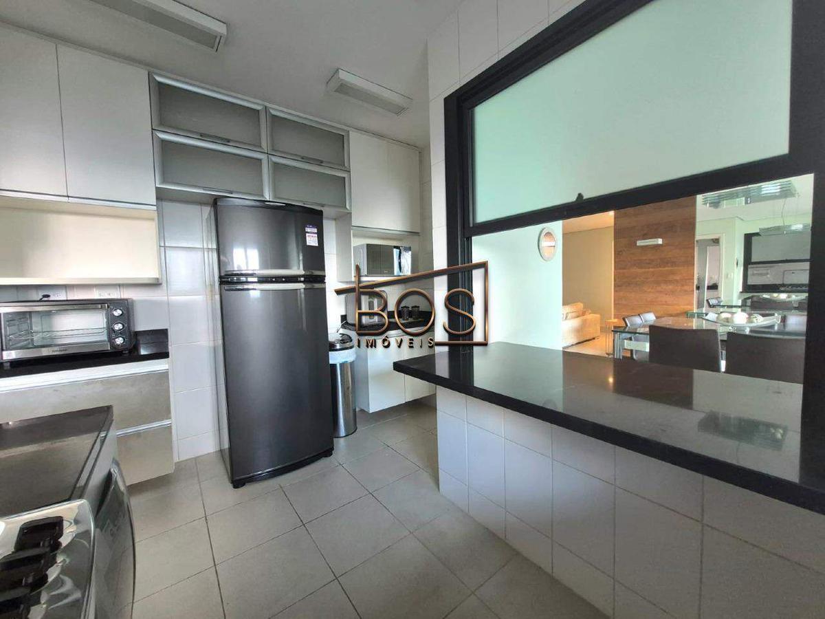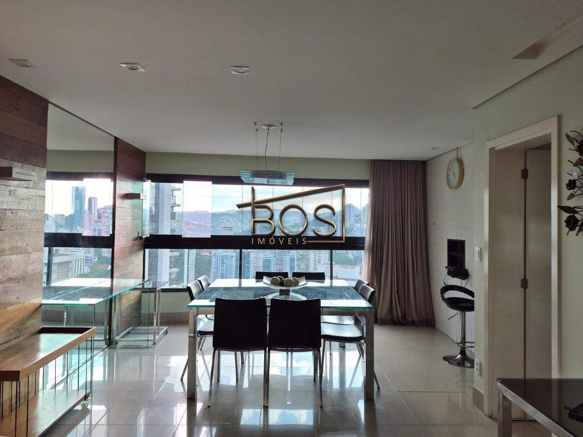 Amplo apartamento totalmente mobiliado, incluindo talheres, todo com rebaixo de gesso, situado em andar alto. Iluminado e arejado, oferece uma vista definitiva para o vale e para cidade.