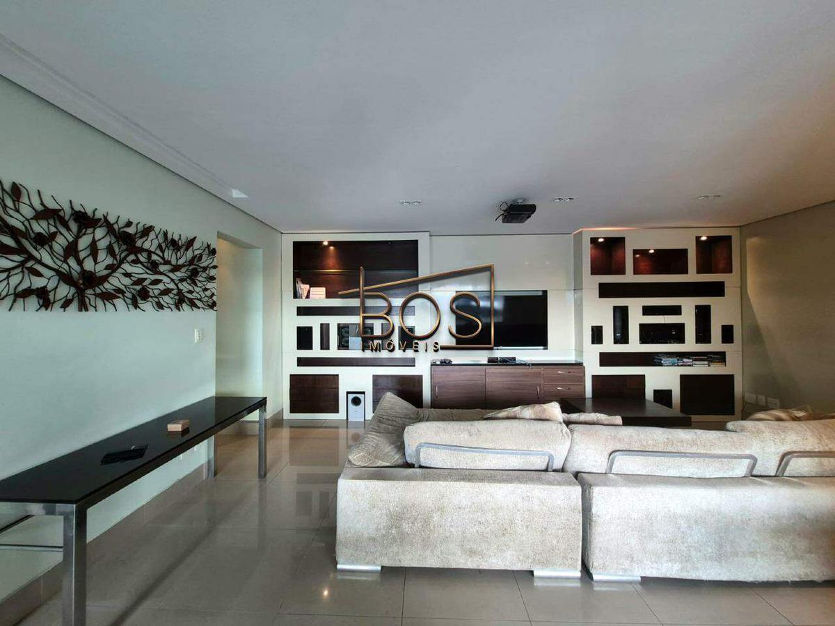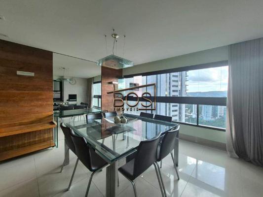 ¿ Sala espaçosa para dois ambientes, com piso em porcelanato, sofá em L, mesa de jantar de vidro, parede espelhada e um lindo painel para TV. Inclui um projetor para sessões de cinema em família, além de uma grande janela com bandeirola que proporciona deslumbrar um lindo pôr do sol e uma ótima ventilação.