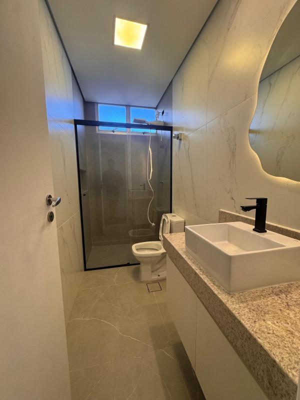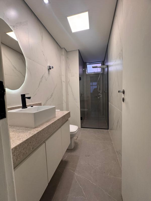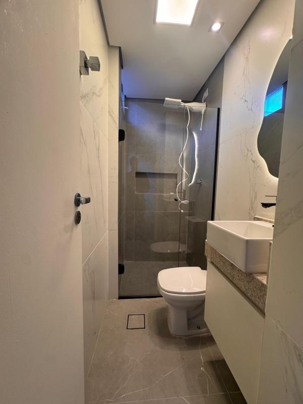 03 banhos com box em blindex, bancada em granito e armários;