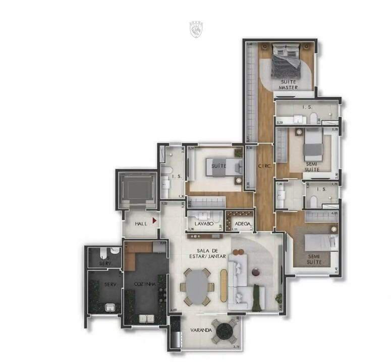 Sala ampla para 02 ambientes, lavabo, 04 quartos confortáveis sendo 02 suítes e 02 semi suítes, cozinha espaçosa e planejada com bancada em granito, adega e área de lavanderia.