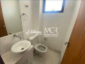 Apartamento com aproximadamente 150m² distribuídos em sala para 2 ambientes com piso em mármore e lavabo. Banho social com armário e box.