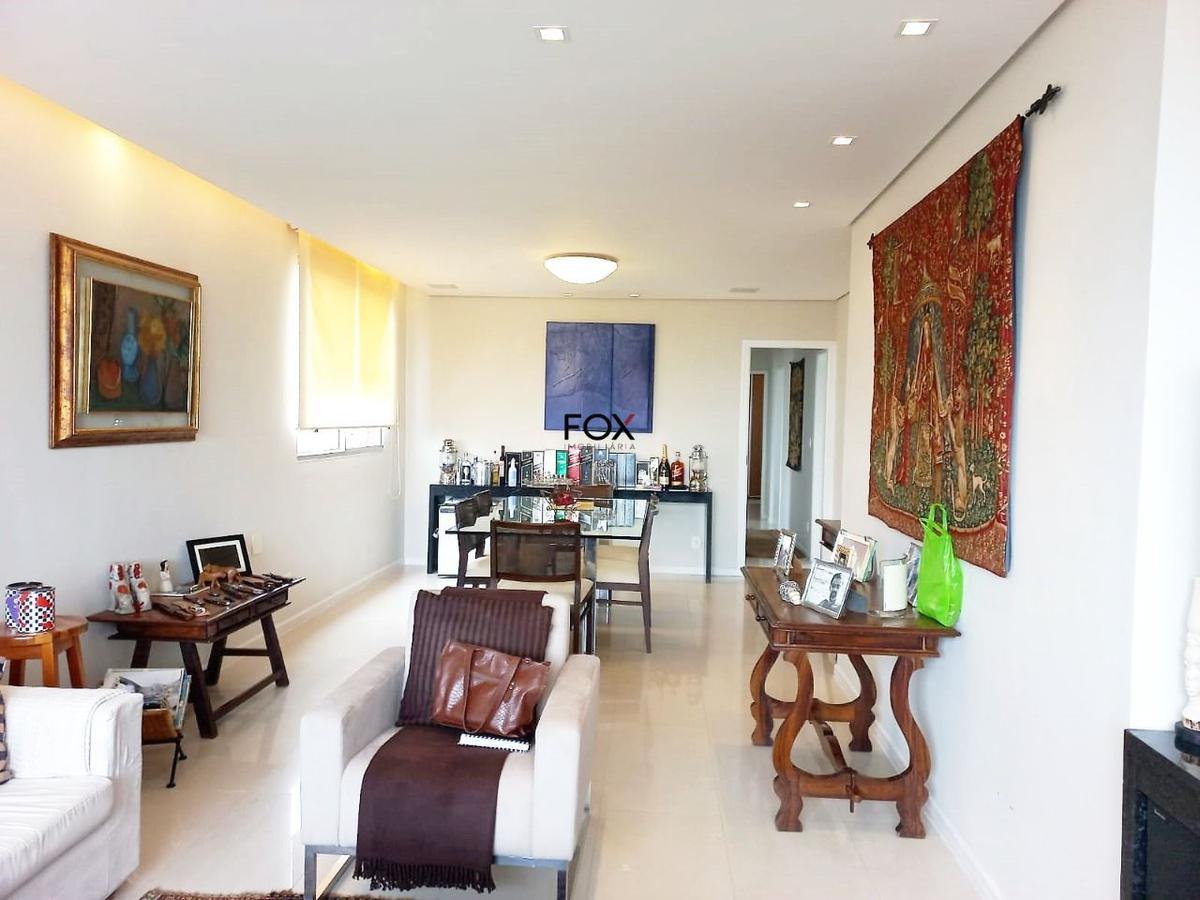 Prédio fachada revestida em mármore / granito e laterais em cerâmica, reformado, 01 por andar, recuado com jardins, salão de festas com vista panorâmica. sala para 2 ambientes com piso em porcelanato e ar condicionado, teto rebaixado com projeto de iluminação e sonorização. 4 quartos com armários novos, sendo 1 suíte máster com ar condicionado. 1 banheiro social. cozinha planejada, em granito. área de serviço e dependência completa de empregada. 2 vagas de garagem em sistema de rodizio de 06 em 06 meses.
