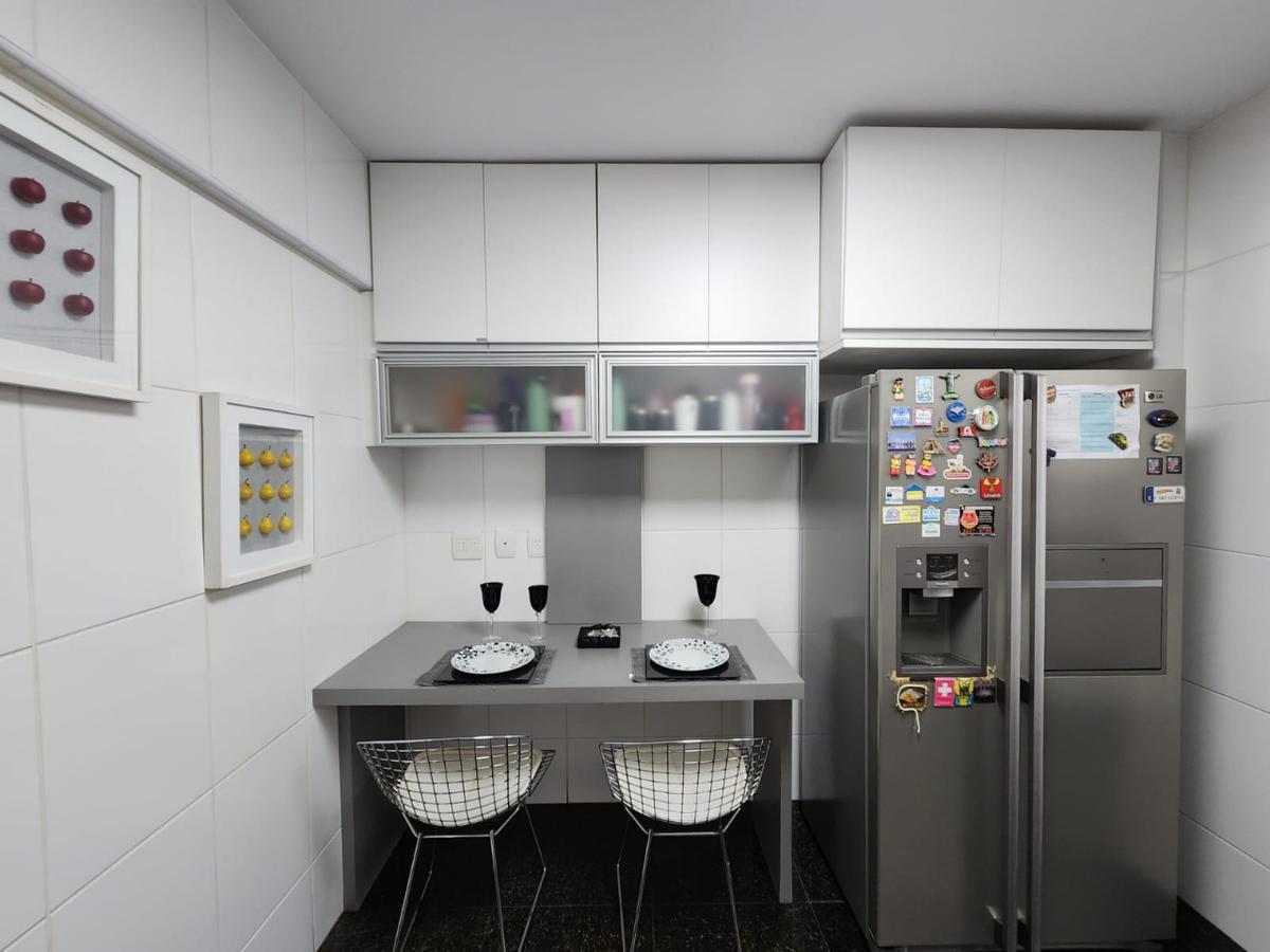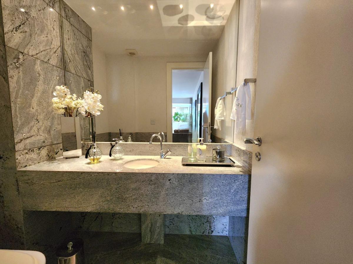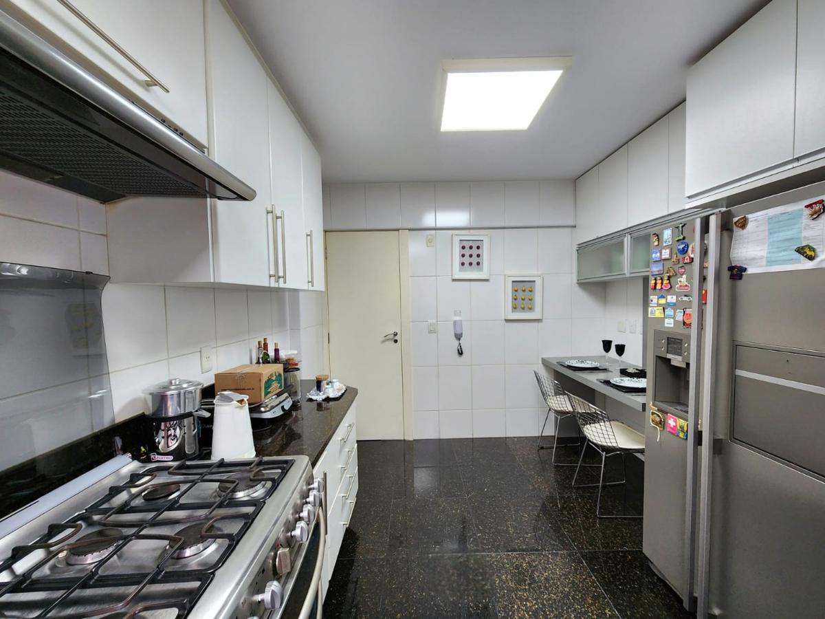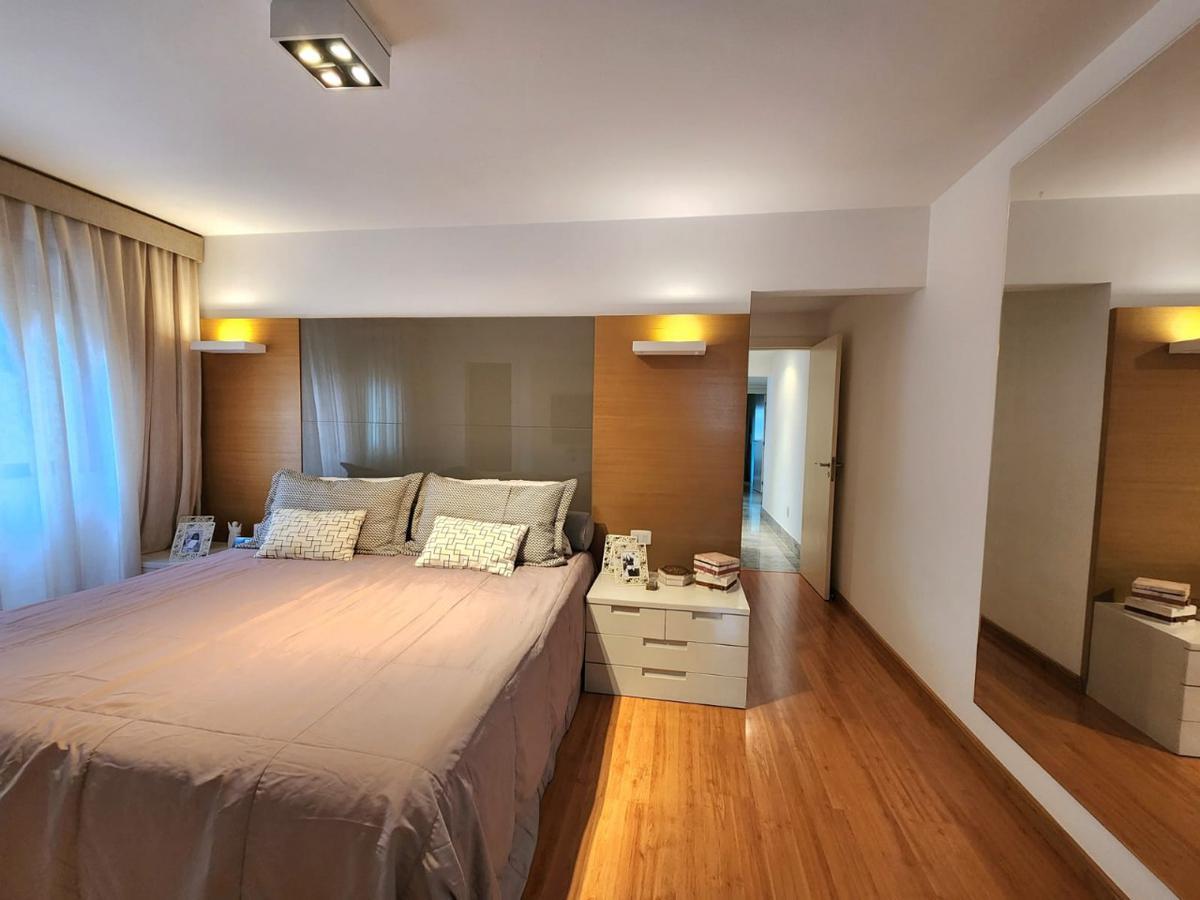 Apartamento claro e arejado, são 176,98 m² de área interna, salão para três ambientes amplos, lavabo, varanda incorporada na sala, com piso em granito, são 04 quartos com armários, sendo 02 suítes e 02 semi suítes com pisos em laminado de madeira, a suíte máster com closet e banho com banheira de hidromassagem, rouparia, cozinha com armários, área de serviço e dependência completa para empregada. Todos os banhos com armários, box e espelhos e as partes frias em granito.
