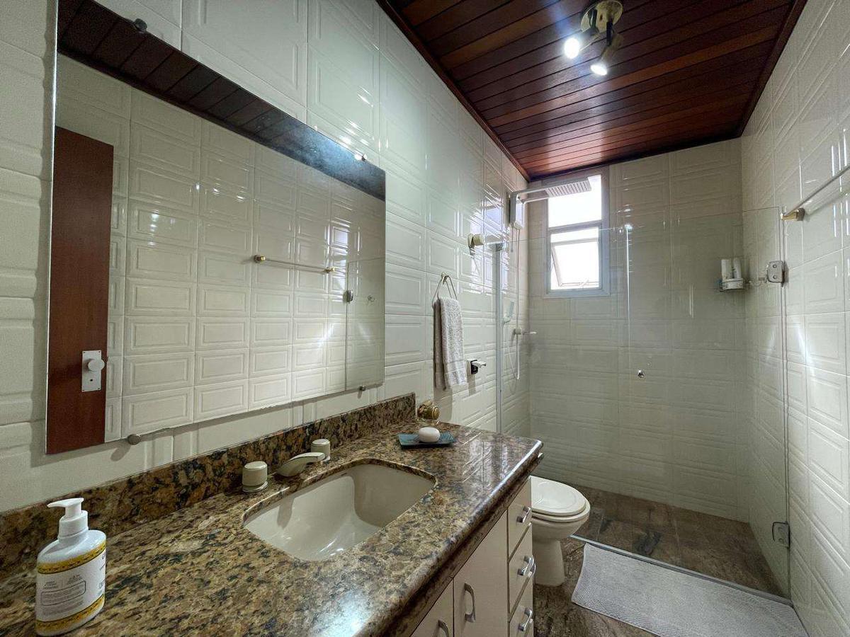 Banheiros (social e suítes) com ótimo acabamento, box em blindex, armários e espelhos.