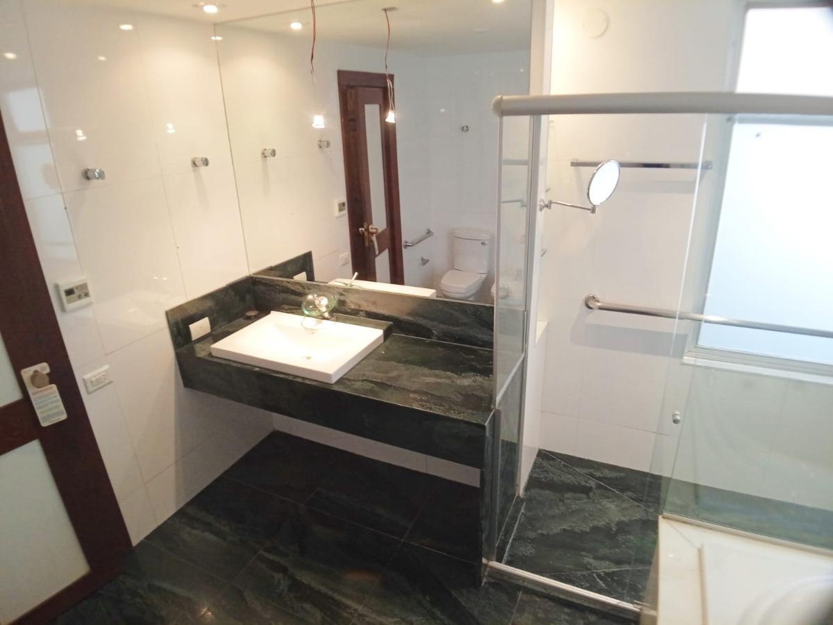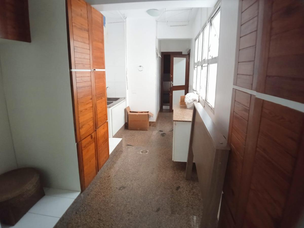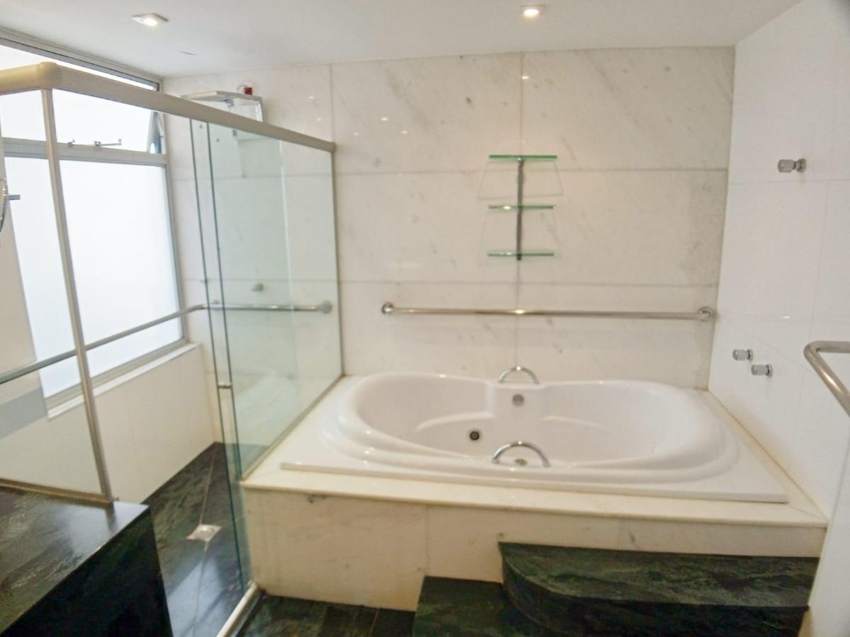 5 salas distribuídas em 2 níveis, inclusive para uso de escritório. lavenidaabo, biblioteca, sala de tv, estar íntimo, visitas, com jardim de inverno. elevador interno. apartamento distribuído em 3 níveis. piso em fino granito e tábua corrida, muitíssimo conservado. armários em todos os quartos, cozinha, banho e área de serviço. varanda na sala e em 2 quartos. banhos de luxo com granito e blindex, sendo o da suite master com hidromassagem e bancada em granito. 4 quartos sendo 2 suites. cozinha com armários, montada com coifa, fogão 6 bocas, mesa para lanche, bancada em granito, rica em armarios. área de serviço espaçosa com armários. dce para até 4 funcionarios.