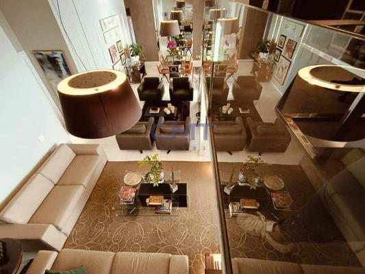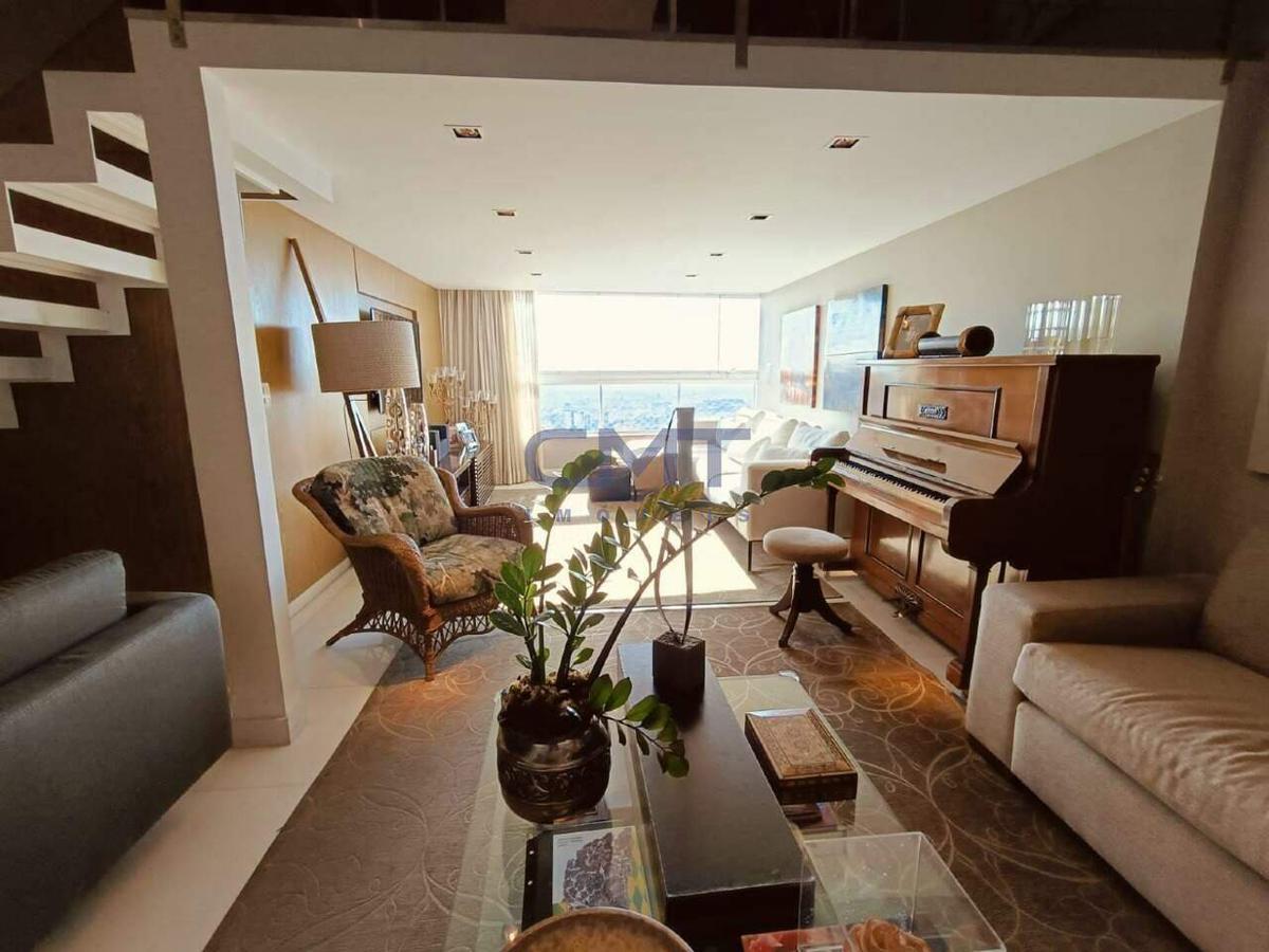 Salas grandes para 4 ambientes, com mezanino, lavabo e varanda gourmet com fechamento em cortina de vidro. Linda vista panorâmica.