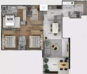 Sala ampla para 02 ambientes, varanda gourmet, 04 quartos confortáveis sendo 01 suíte máster com closet, banheiro social, cozinha espaçosa e planejada com bancadas em granito, área de lavanderia independente, quarto e banheiro de serviço