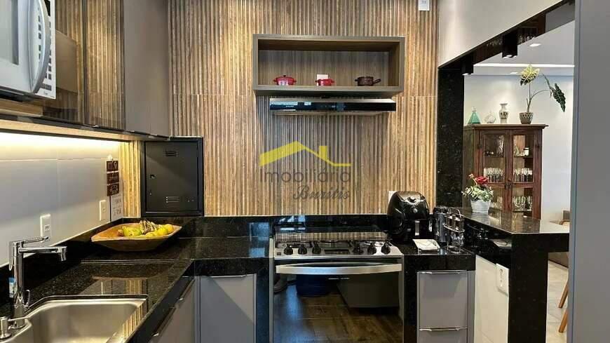 Quatro quartos, sendo uma suíte. Uma sala para dois ambientes, com iluminação planejada e varanda incorporada. Três banheiros. Cozinha montada com armários e bancada em granito. Área de serviço com armários e banheiro de serviço. Piso em mármore e tábua corrida. Duas vagas de garagem, em linha e cobertas. Box de despejo. Prédio com lazer, piscina, elevador, salão de festas e espaço gourmet, espaço kids e quadra de futsal.