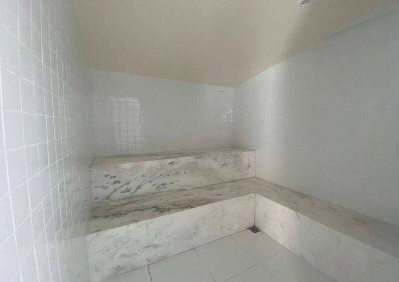 Sauna com área de descanso e ducha