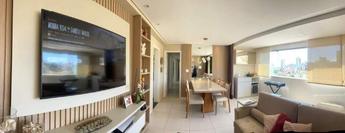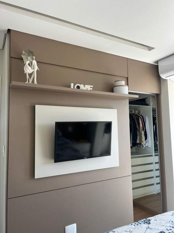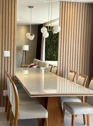 Sala ampla com piso em porcelanato para 02 ambientes com painel com rack para tv, painel com espelho, varanda, 04 quartos com armários, painéis para tv e piso em laminado de madeira sendo 01 suíte com closet , banheiro social, rouparia montada no corredor, cozinha espaçosa com armários planejados, piso em porcelanato e bancadas em granito verde Ubatuba, área de serviço independente, quarto e banheiro de serviço.