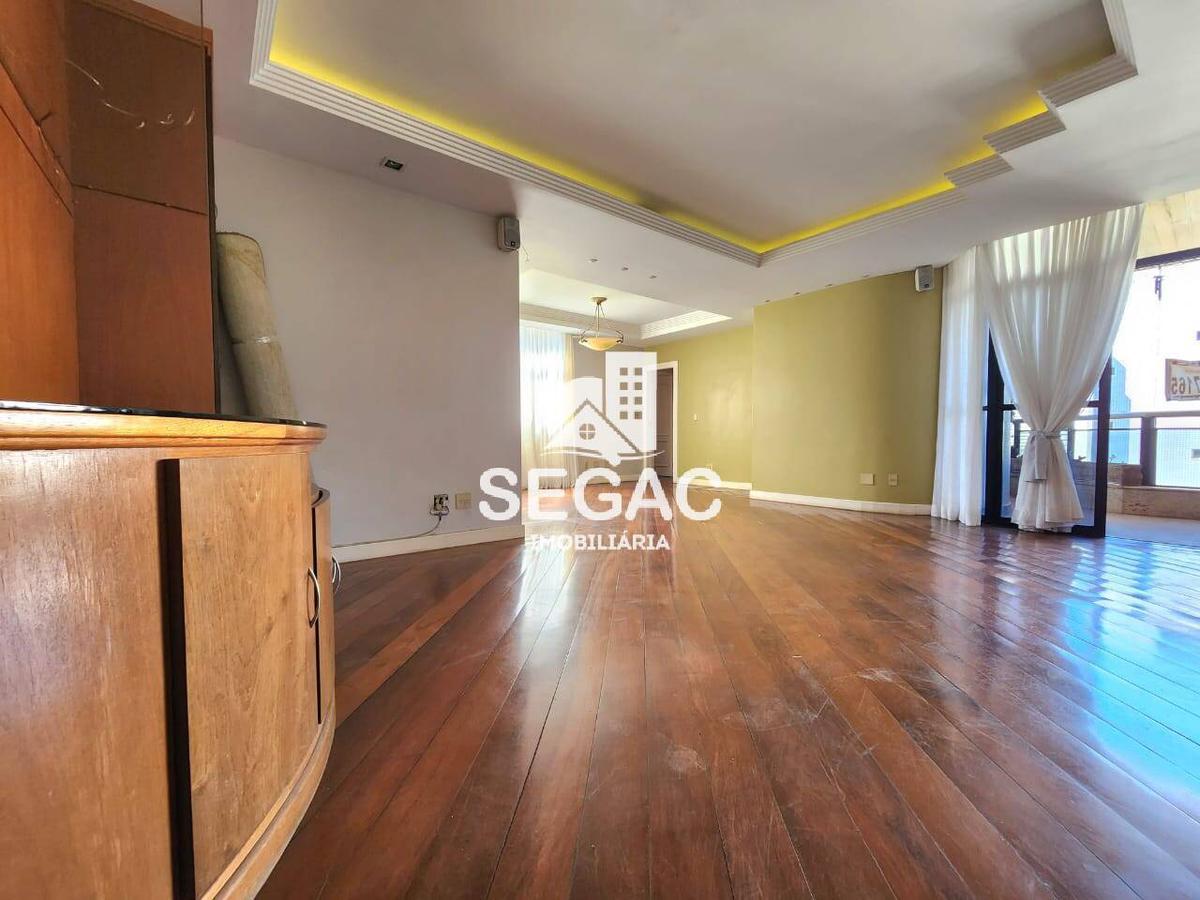 Sala ampla para 02 ambientes, varanda, vista panorâmica, 04 quartos confortáveis com armários, janelas com venezianas integradas e piso em tábua corrida sendo 01 suíte com hidromassagem, banheiro social, cozinha espaçosa com piso e bancada em granito e armários planejados, área de lavanderia independente, quarto e banheiro de serviço