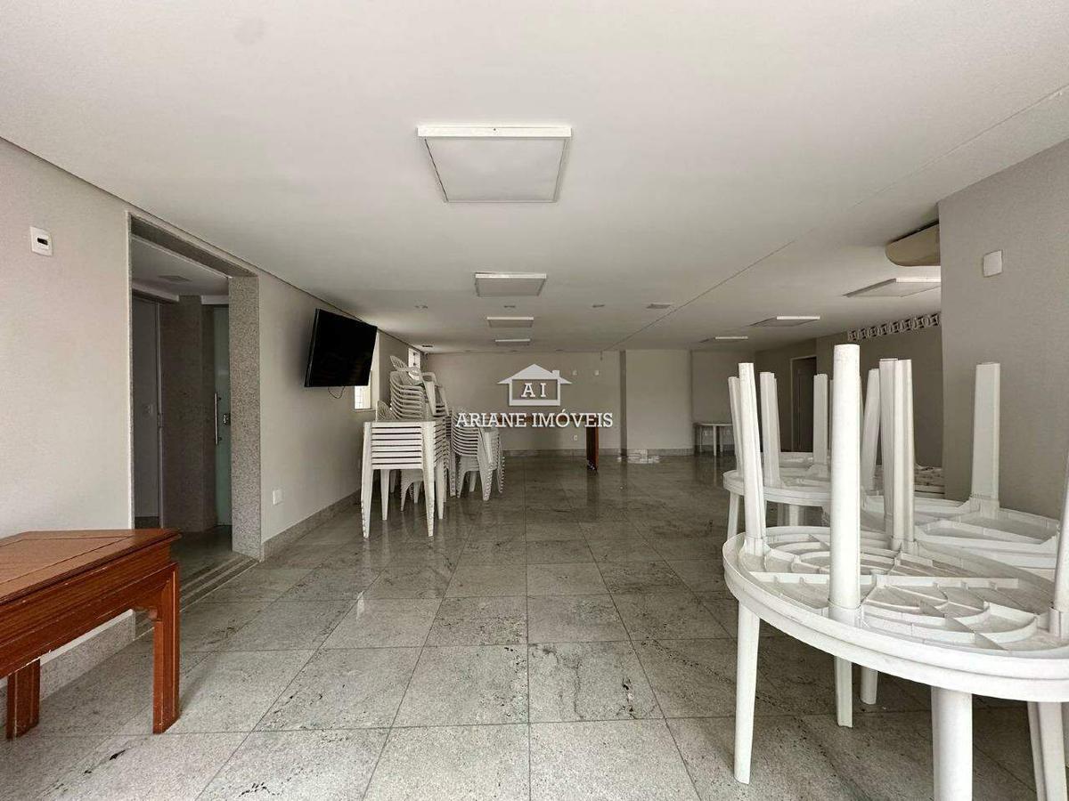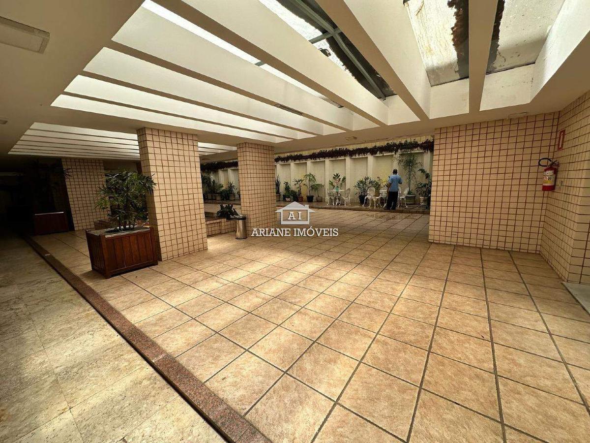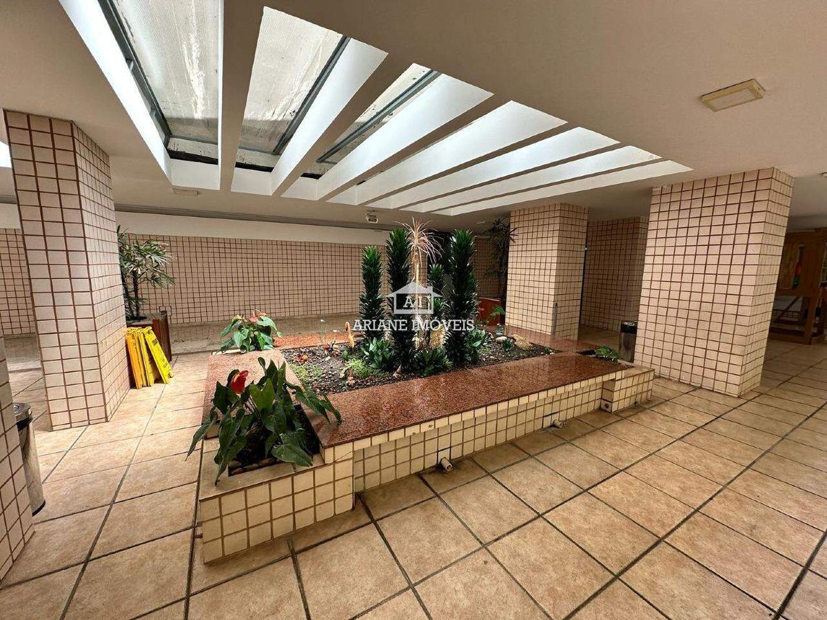 O condomínio oferece elevador, portaria 24 horas, hall de entrada decorado, salão de festas e playground, garantindo segurança e comodidade.