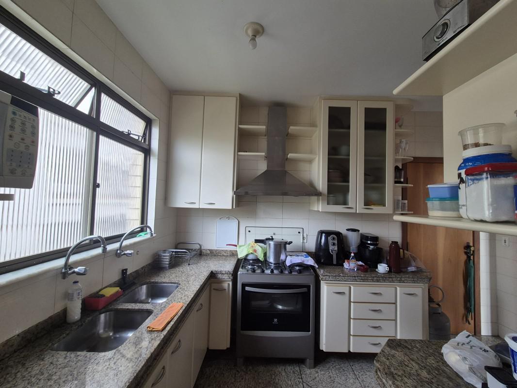 Cozinha com armários, bancada em granito;