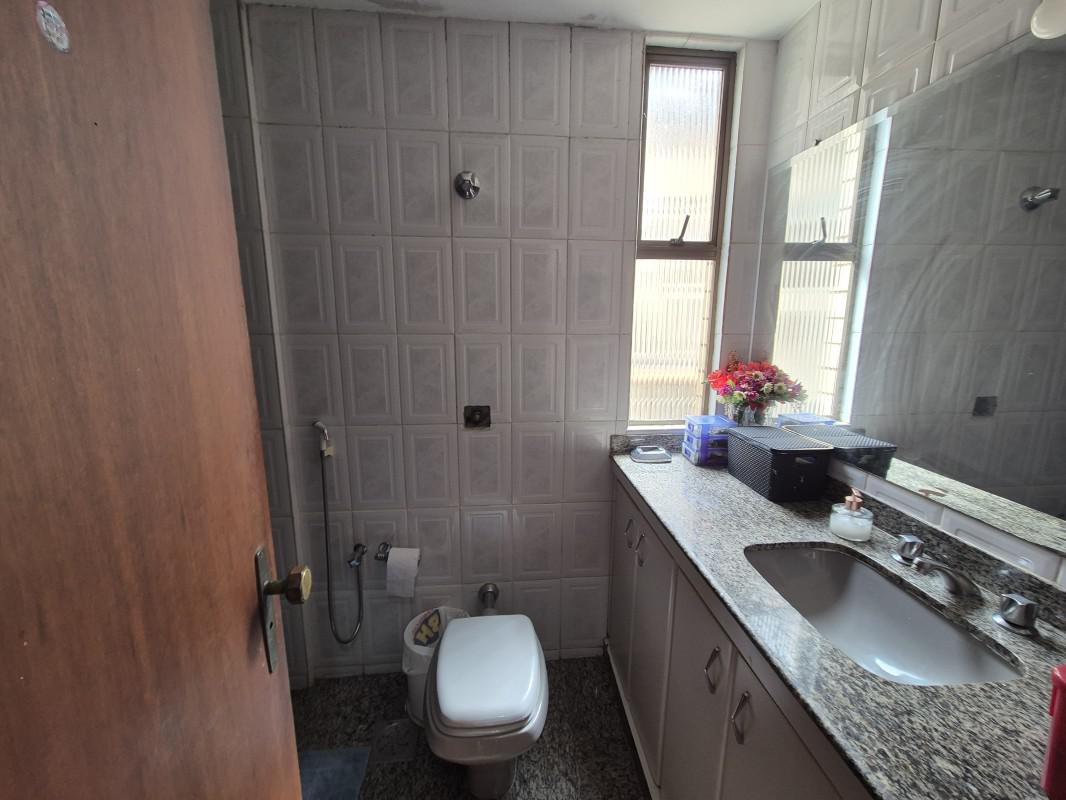 Banho social com armário e box blindex;