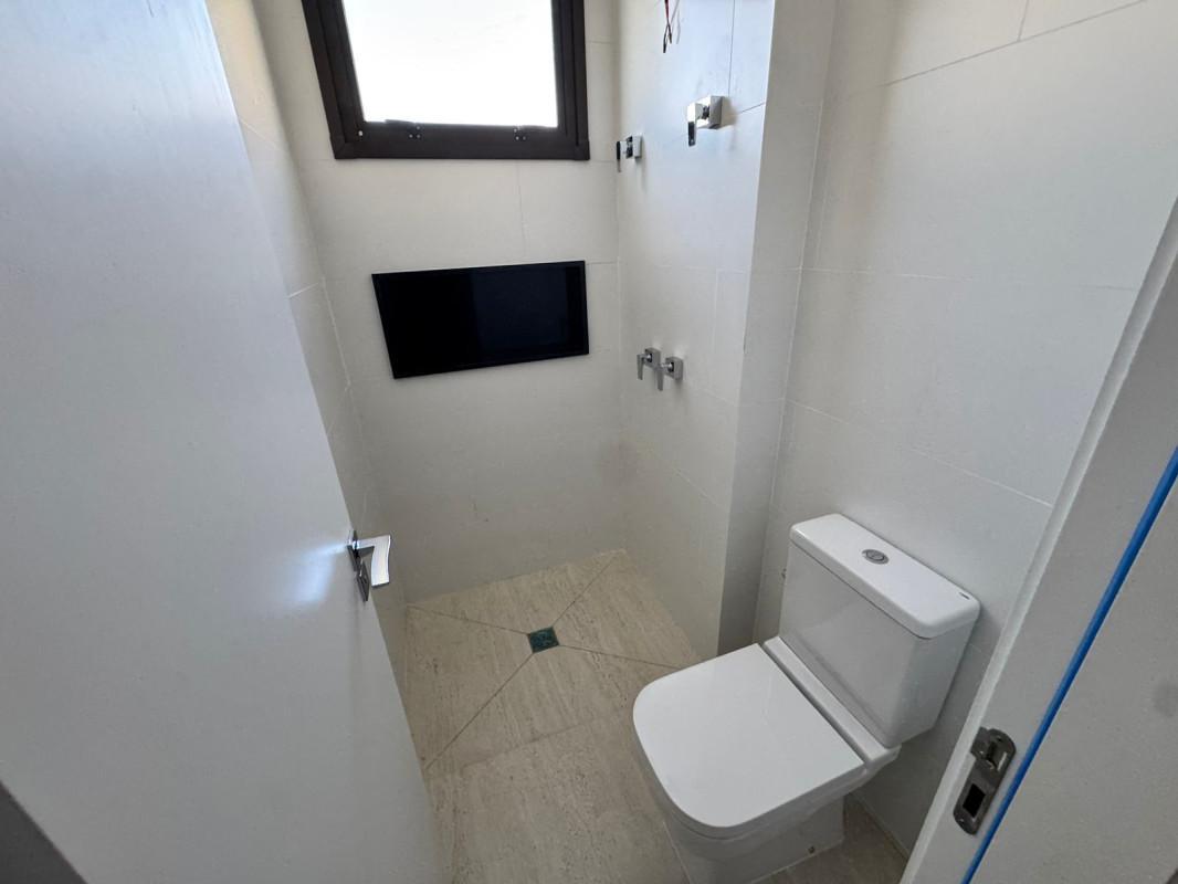 4 quartos amplos, todos com piso vinílico amadeirado, sendo duas suítes com bancada em granito e pia em cuba de apoio, e duas semissuítes com bancada em granito (compartilhada pelos dois quartos)