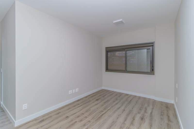 4 Quartos espaçosos com armários planejados e piso em laminado de madeira, sendo uma Suíte Master, uma Suíte convencional e duas Semi-Suítes.