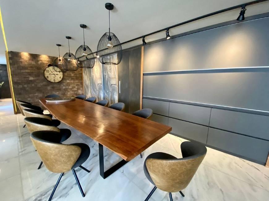 Apartamento: Apartamento de alto luxo todo reformado com 280m², possui 3 salas finalmente decoradas com iluminação indireta e painéis, 4 quartos todos com armários sendo 2 suítes a principal com hidromassagem, banho social, cozinha toda planejada e bastante ampla com bancadas em granito, despensa, área de serviço e DCE.