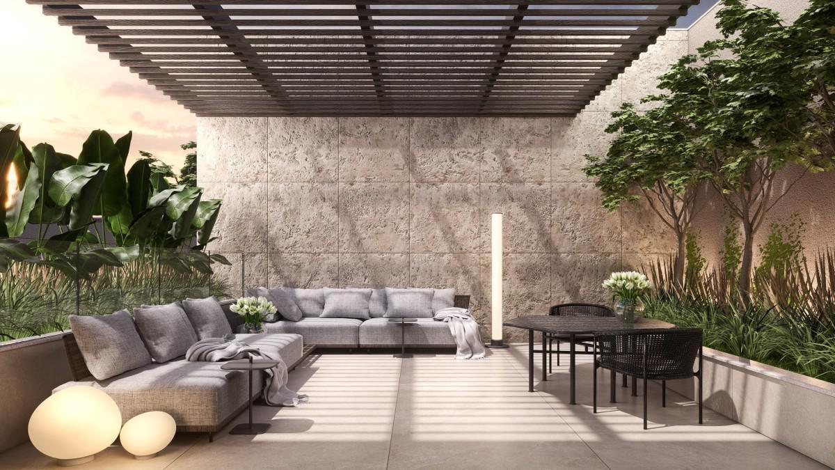 -Suíte-master e cozinha, com terraço descoberto.