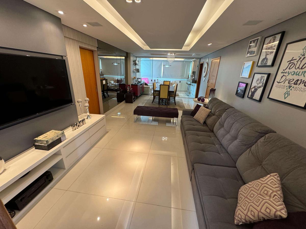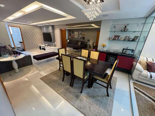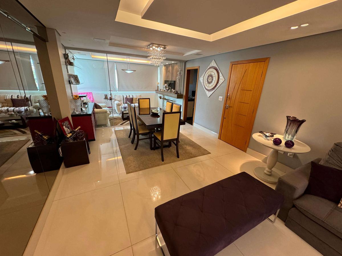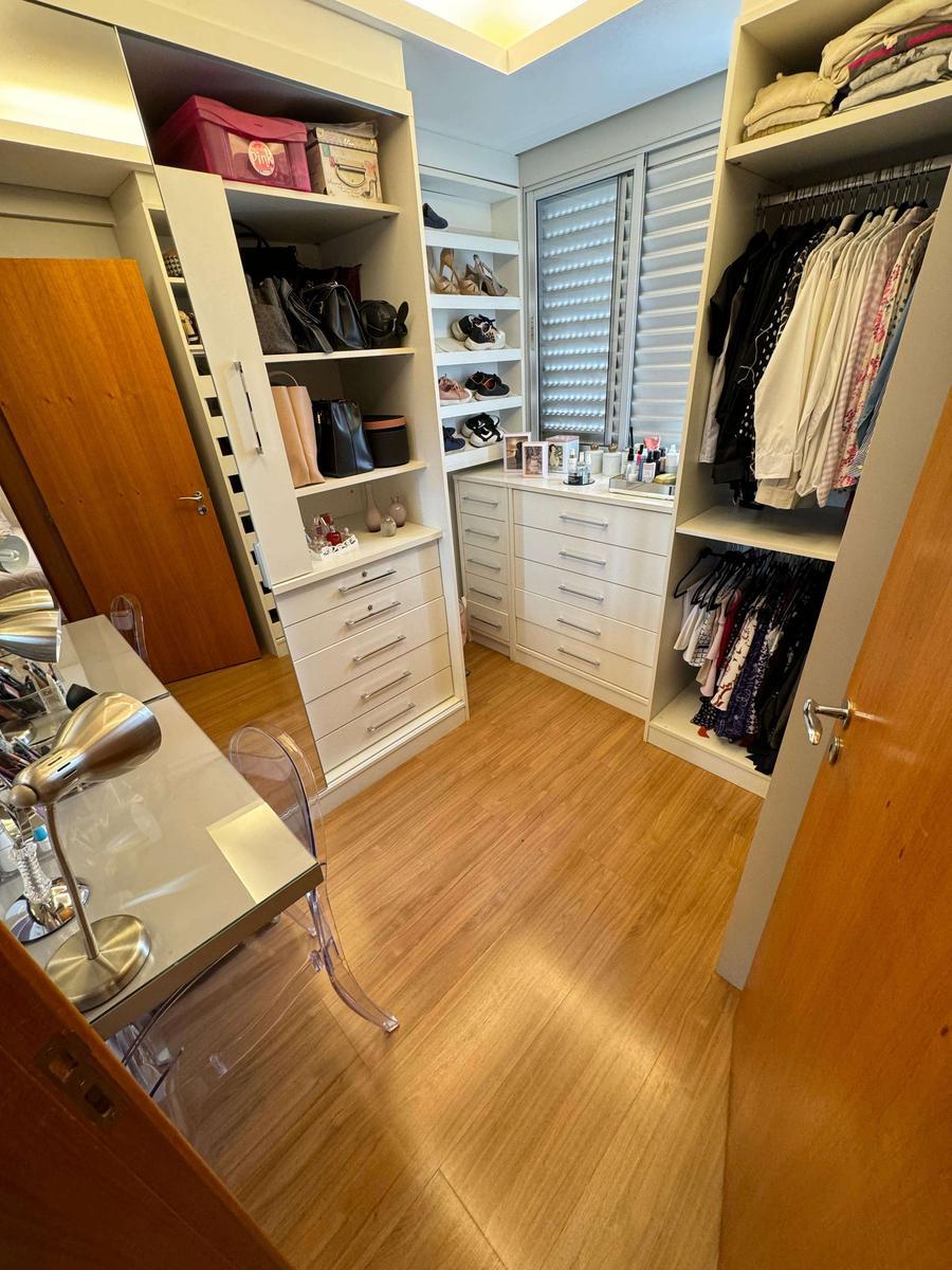 Apartamento à venda no Fernão Dias com 127 m² e acabamento de alto padrão, composto por ampla sala para 02 ambientes com rebaixamento em gesso, iluminação planejada, painel de TV, espelho e piso em porcelanato, varanda com fechamento em blindex, banho social com bancada em granito, armário, espelho e box em blindex, 04 quartos amplos com armários planejados, piso em laminado de madeira e janelas com venezianas, sendo 02 suítes, suíte principal com ar-condicionado, varanda e hidromassagem e 01 quarto transformado em um lindo Closet, banho das suítes com bancada em granito, armário, espelho e box em blindex, cozinha com bancadas em granito e armários planejados, área de serviço independente e DCE.