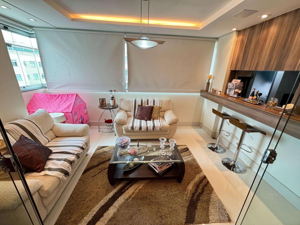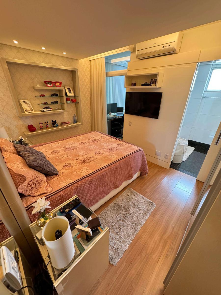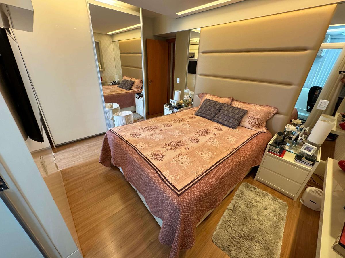 Apartamento à venda no Fernão Dias com 127 m² e acabamento de alto padrão, composto por ampla sala para 02 ambientes com rebaixamento em gesso, iluminação planejada, painel de TV, espelho e piso em porcelanato, varanda com fechamento em blindex, banho social com bancada em granito, armário, espelho e box em blindex, 04 quartos amplos com armários planejados, piso em laminado de madeira e janelas com venezianas, sendo 02 suítes, suíte principal com ar-condicionado, varanda e hidromassagem e 01 quarto transformado em um lindo Closet, banho das suítes com bancada em granito, armário, espelho e box em blindex, cozinha com bancadas em granito e armários planejados, área de serviço independente e DCE.