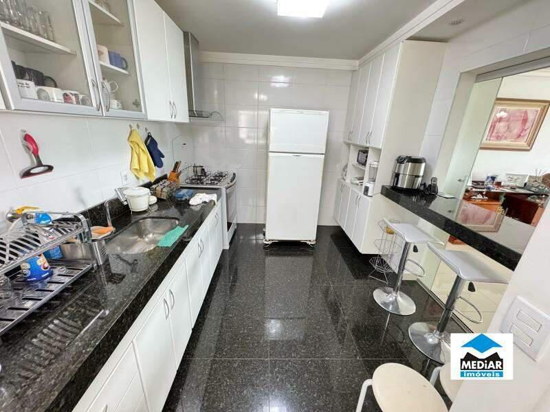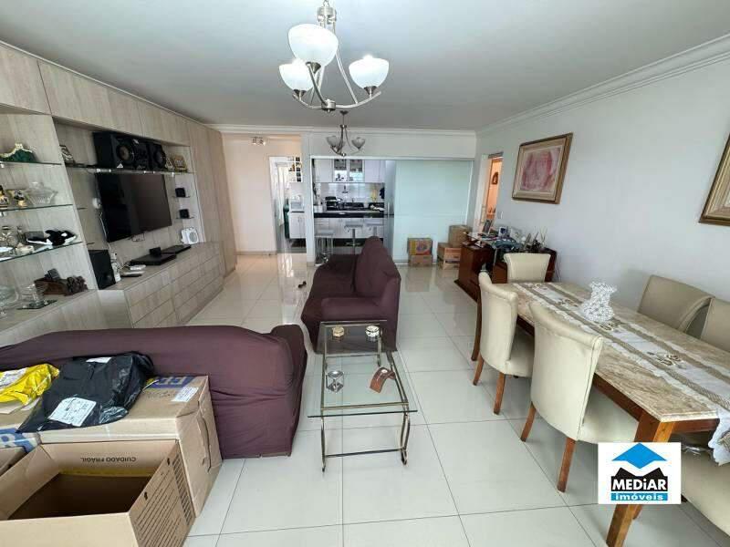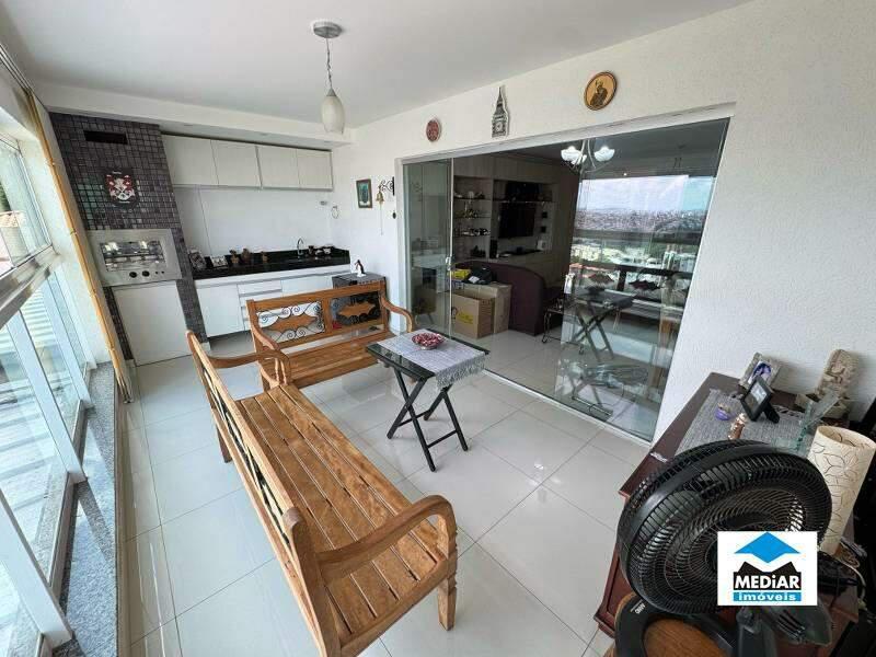 Sala para 02 ambientes com painel de TV e piso em porcelanato, varanda Gourmet com churrasqueira, bancada em granito, armários planejados e vista, banho social com bancada em granito, armário, espelho e box em blindex, 04 quartos amplos com armários planejados, piso em laminado de madeira e janelas com venezianas, sendo 02 suítes, suíte principal com Closet e hidromassagem, banho das suítes com bancada em granito, armário, espelho e box em blindex, cozinha com armários planejados e bancadas em granito, área de serviço separada e banho de empregada.