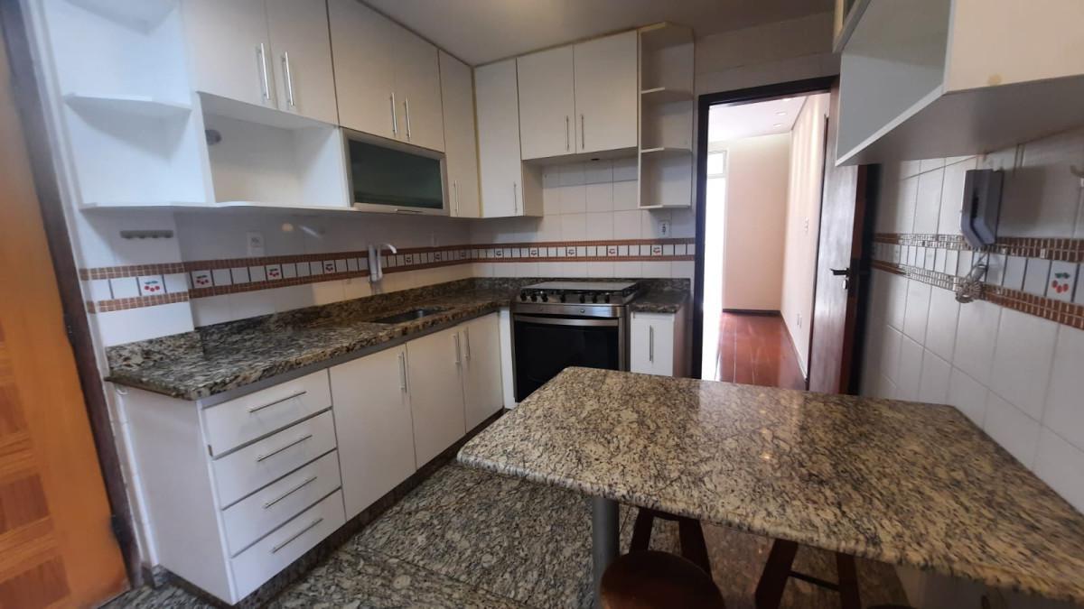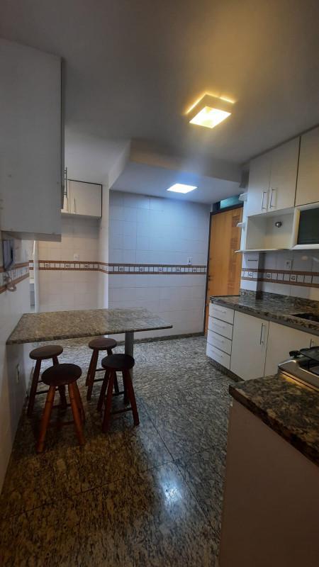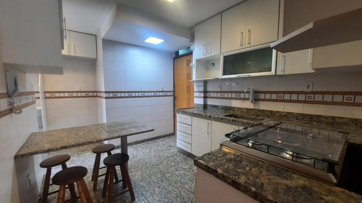 - Cozinha planejada, equipada com armários, fogão e forno embutidos;