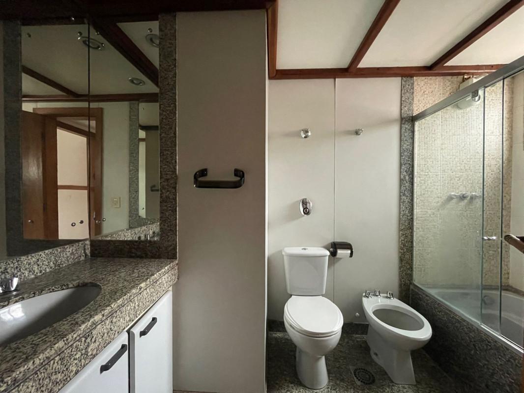 Apartamento com área de 209m², sala ampla para 02 ambientes com piso em tábua corrida e teto com acabamento com moldura em gesso, lavabo com bancada em granito, 04 quartos amplos com armários e piso em tábua corrida, sendo 01 suíte com bancada em granito, espelho e box em blindex, banheiro social com espelho, bancada em granito, armários, banheira e box em blindex, cozinha espaçosa com piso e bancada em granito e armários, área de serviço com tanque e armários, DCE.