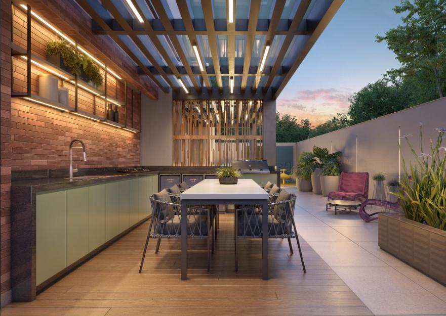 Unidades de 4 quartos e coberturas contam com churrasqueira a gás de baixa emissão de fumaça. Piscinas aquecidas (adulto e infantil); Sauna e academia climatizada; Salão de festas com pé-direito duplo e forro acústico; Espaço gourmet com churrasqueira; Playground, pet place e a charmosa ¿praça do fogo¿ (fogo de chão); Praça com paisagismo, móveis urbanos e iluminação acolhedora; Wi-Fi nas áreas comuns.