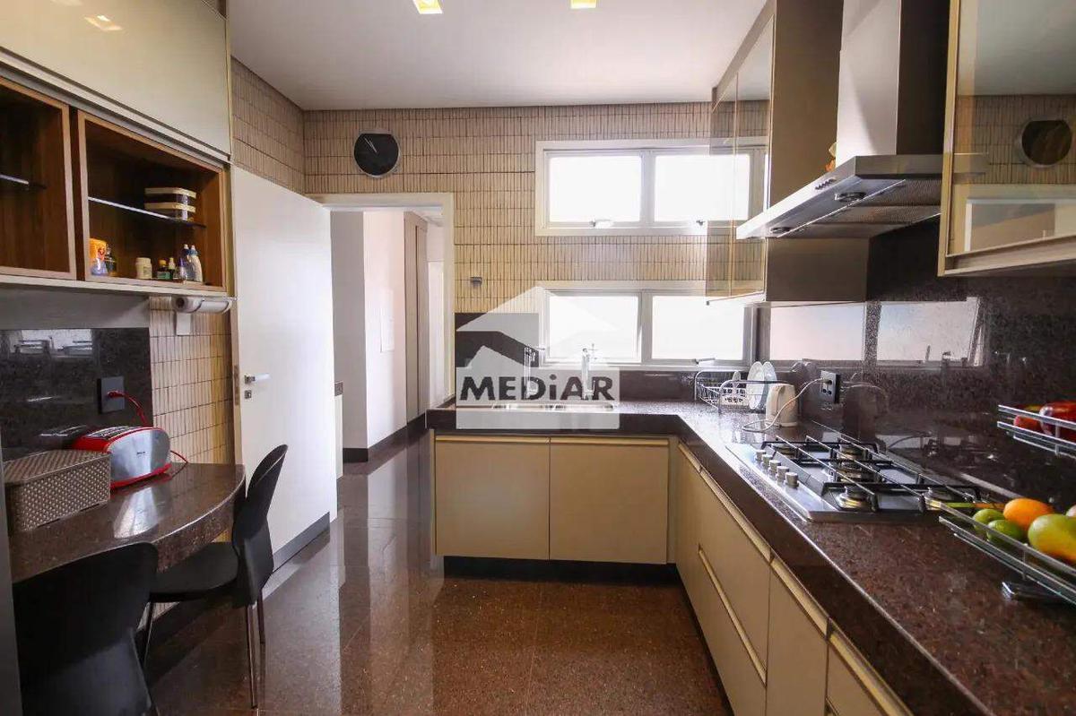 ¿ Cozinha Funcional: Excelente Cozinha com rebaixamento em gesso e iluminação planejada, com armários totalmente planejados, bancadas e piso em granito; Despensa e lavabo.